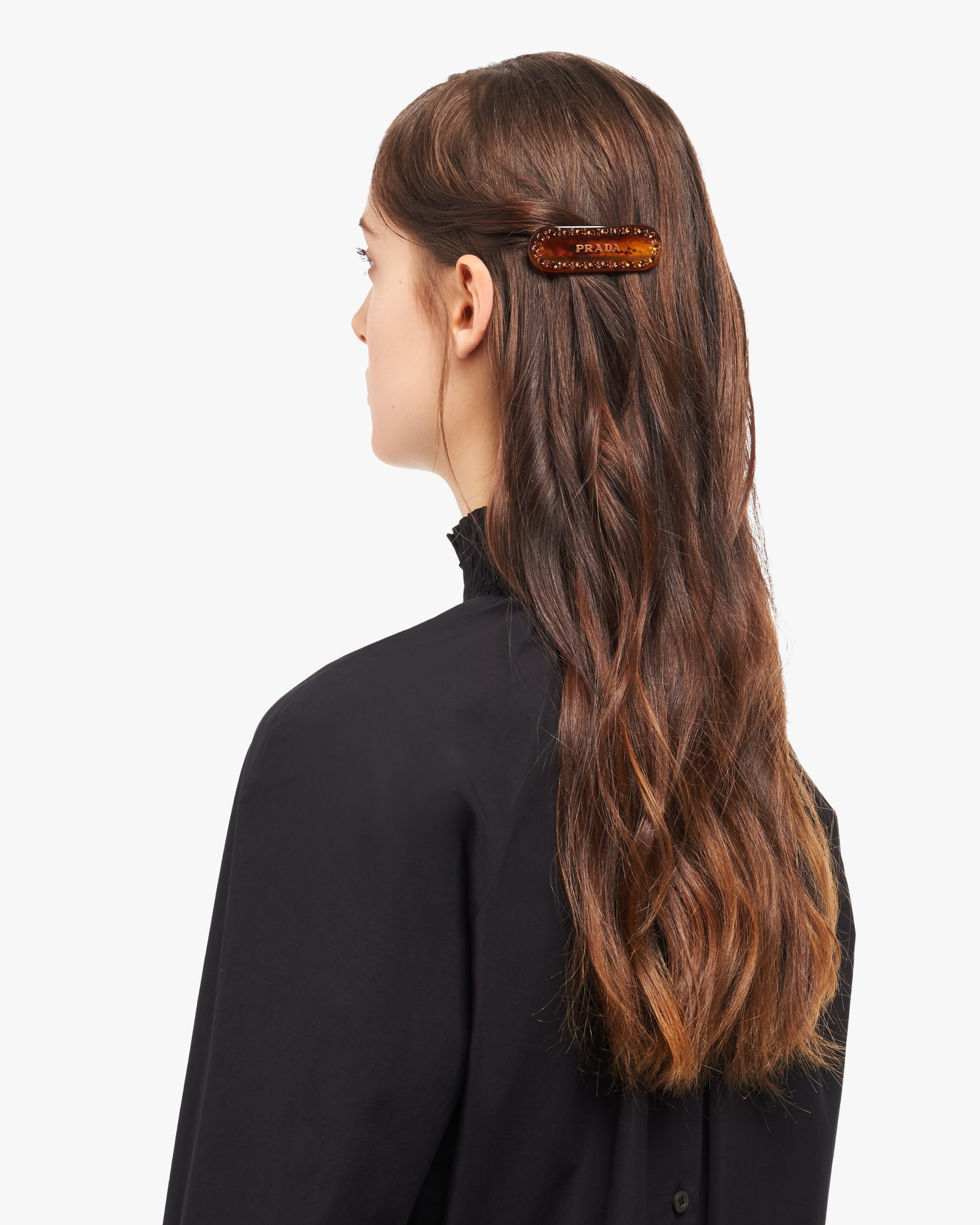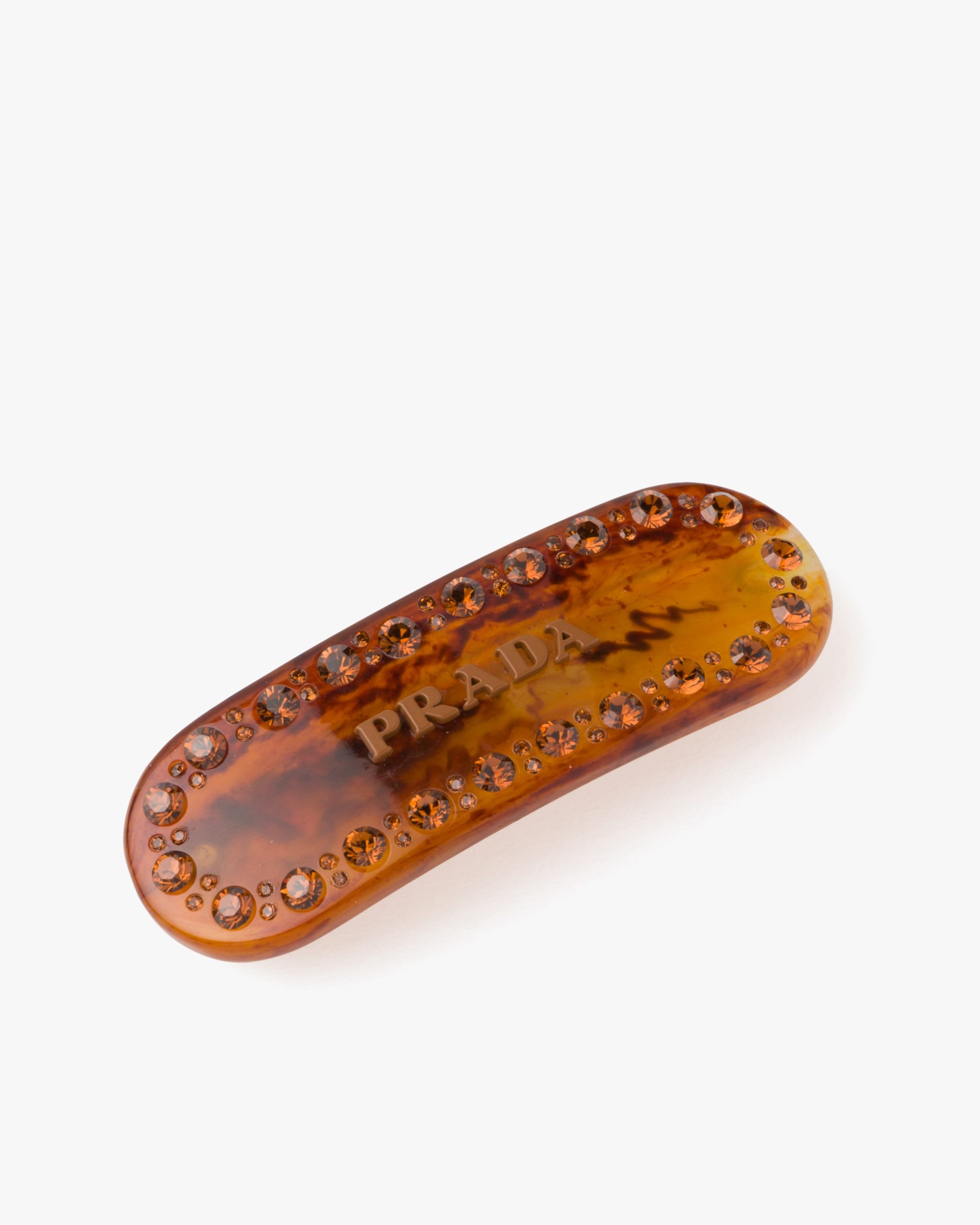 This hair clip is decorated by the Prada logo2 and applied crystals.