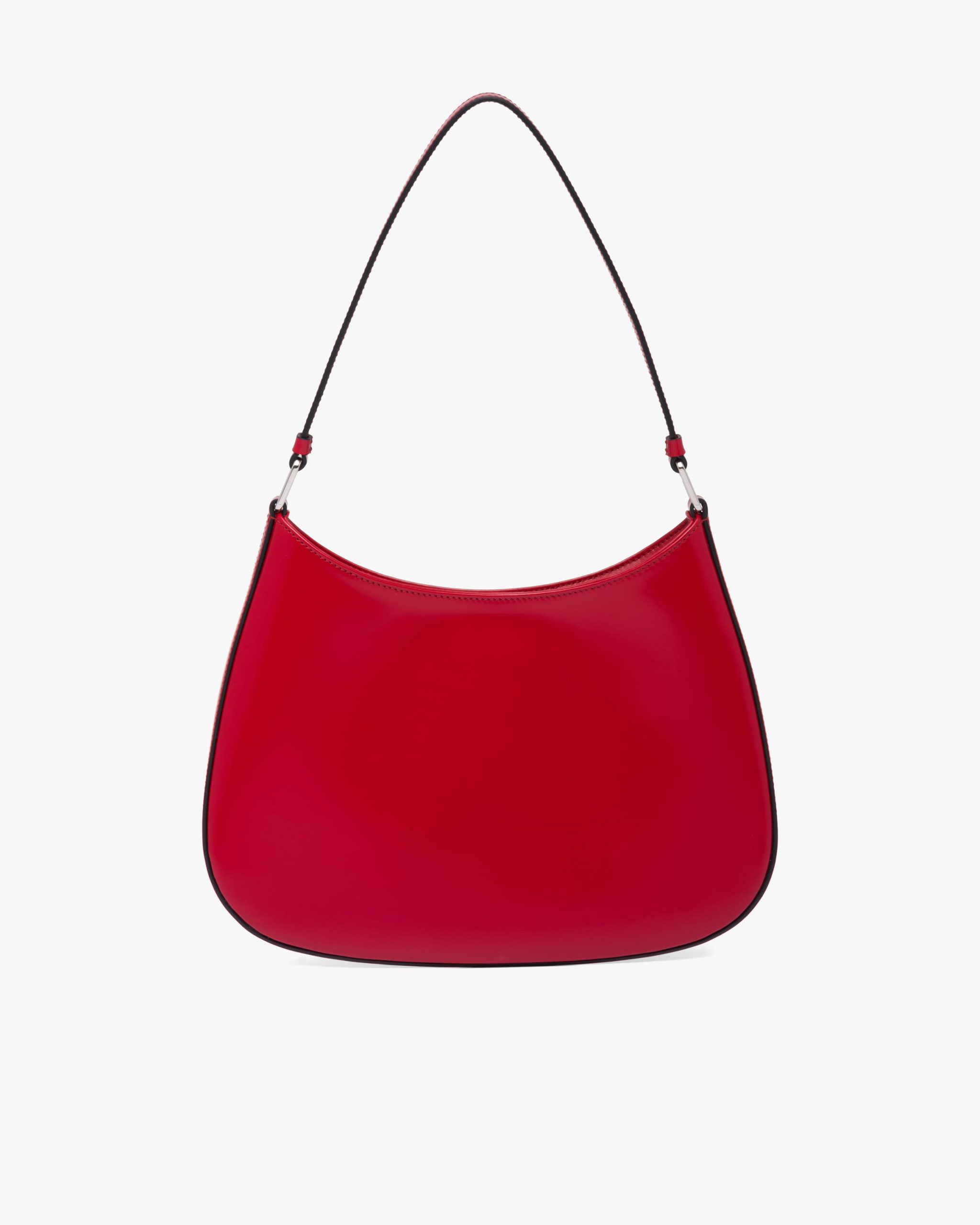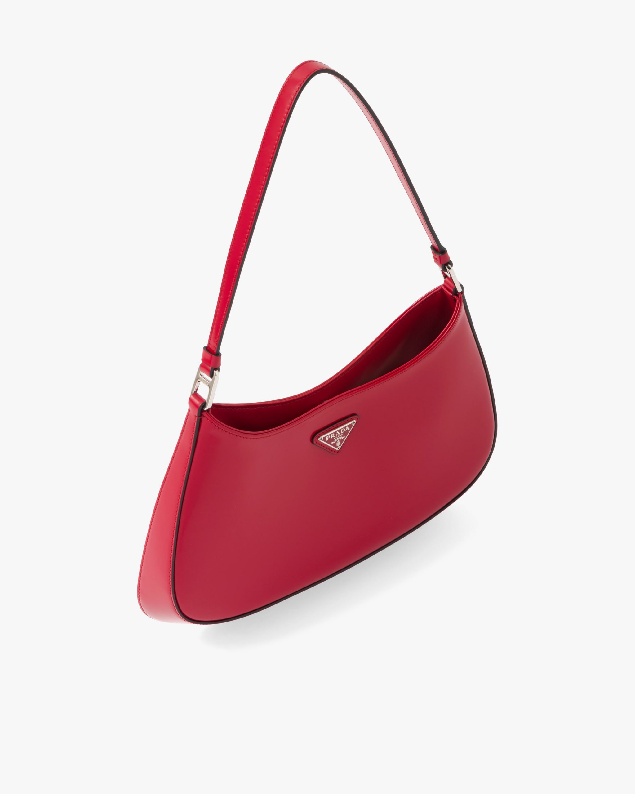 The Prada Cleo bag with sophisticated allure reinterprets an iconic design of the brand from the 1990’s. Sleek curved lines emphasized by the particular construction rounded on the bottom and sides give this hobo bag a soft, light look. Brushed leather, a modern and versatile material that is distinctive in Prada collectsions, is ideal for creating always new combinations and contrasts. The enamel triangle logo2 decorates the silhouette.