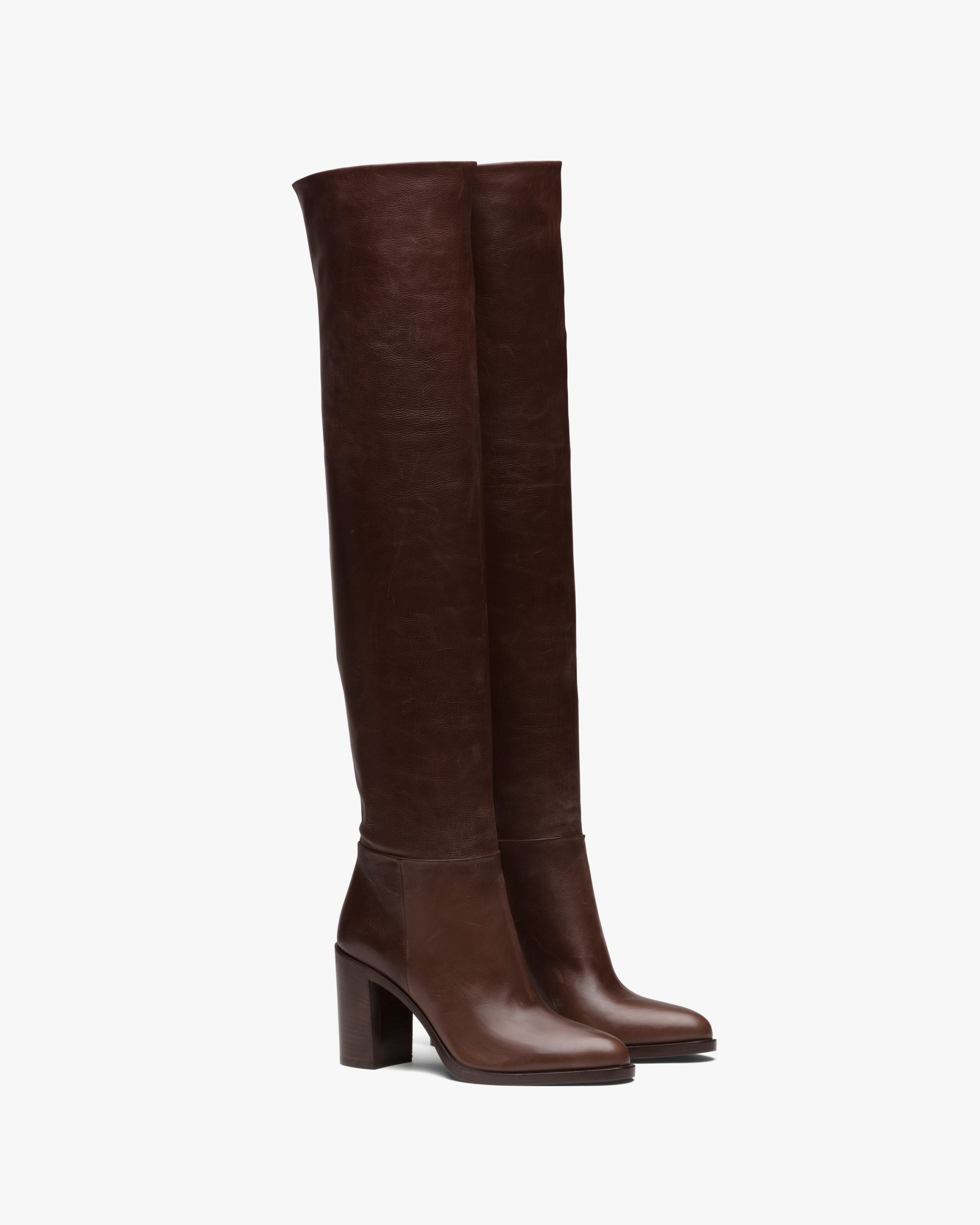 These soft leather boots with a distinctive silhouette are characterized by the leather and rubber monobloc sole.