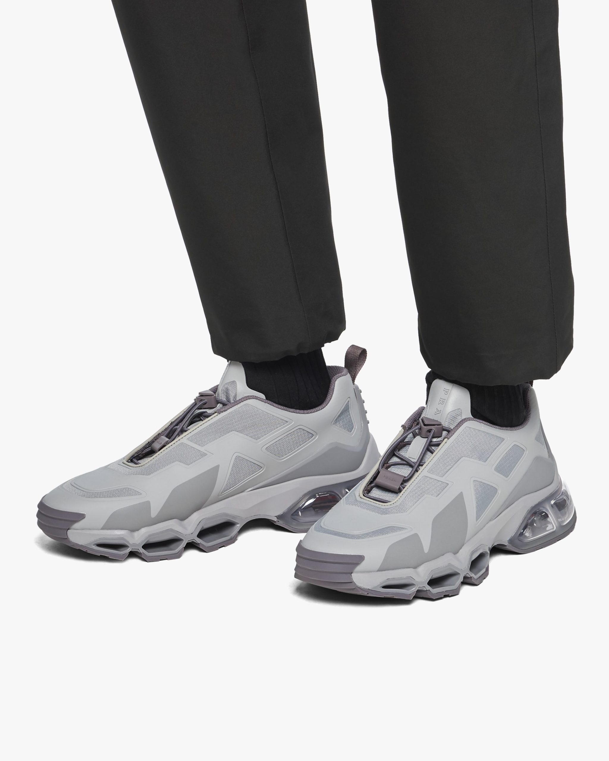 Made from rubber-injected fabric, these Prada Collision sneakers feature a futuristic design and 3D appliqu?s.