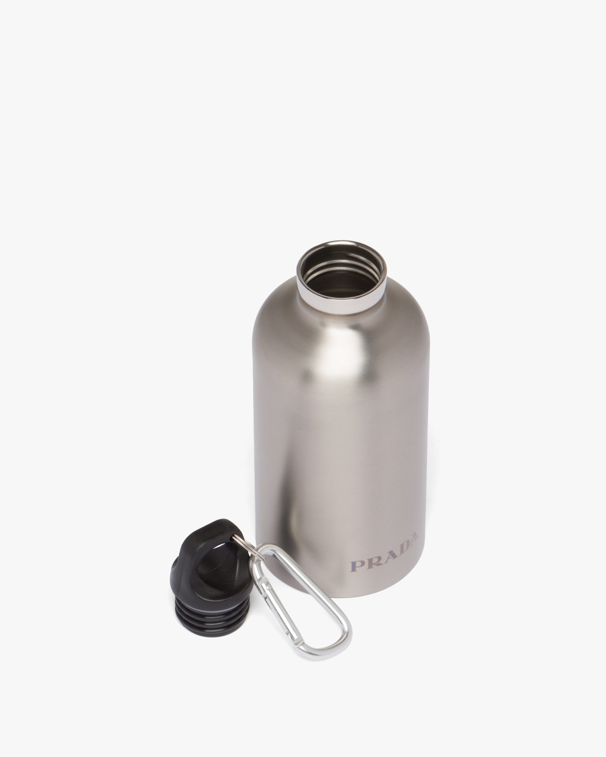 This 350 ml stainless steel water bottle has an elegant metallic finish. Provided with a snap-hook and removable ring, it features an embossed lettering logo2 that gives it an iconic look.