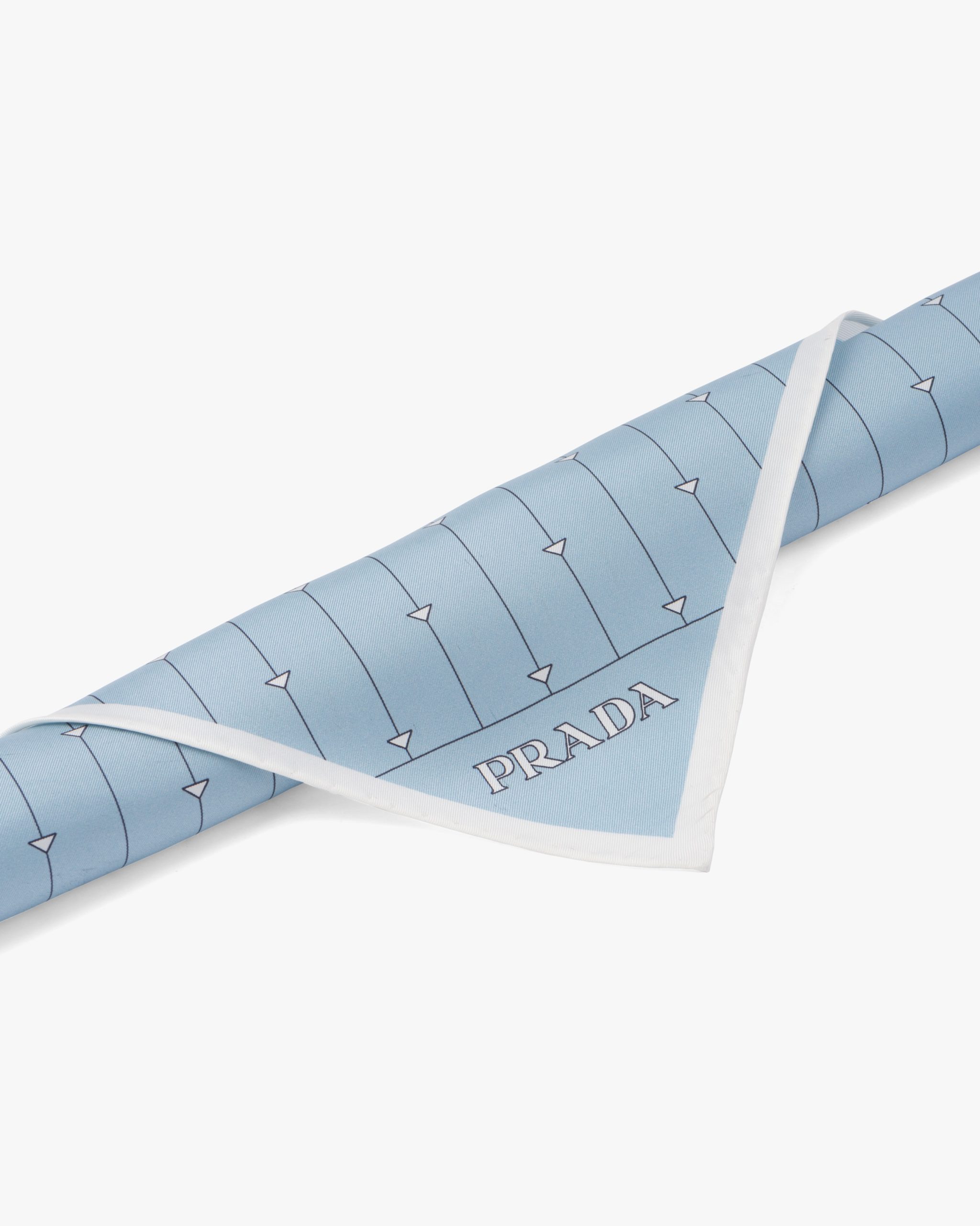 The triangle, Prada’s iconic logo2 since 1913, is reimagined in always new ways and is combined with narrow stripes in the delicate graphic pattern on this twill scarf.