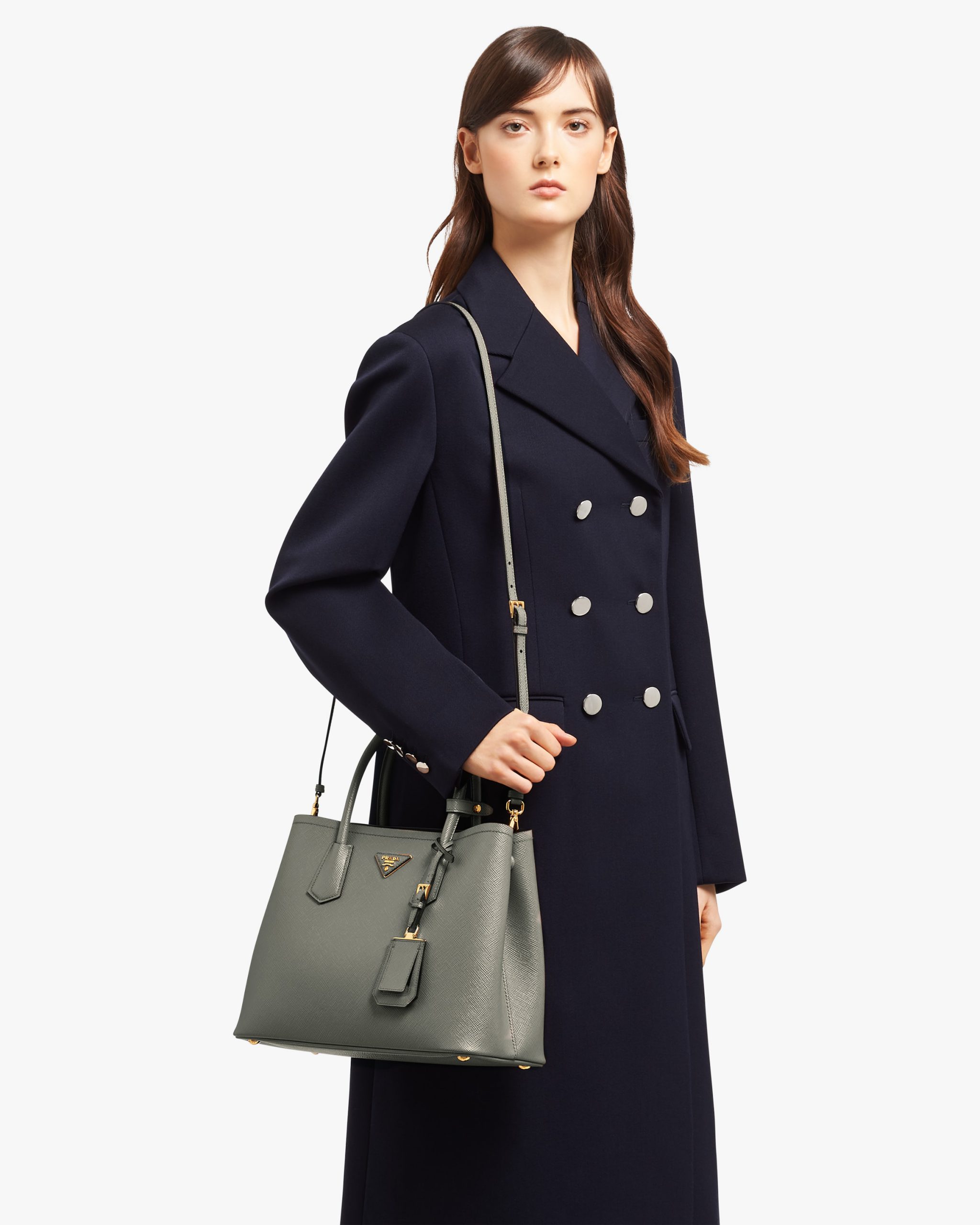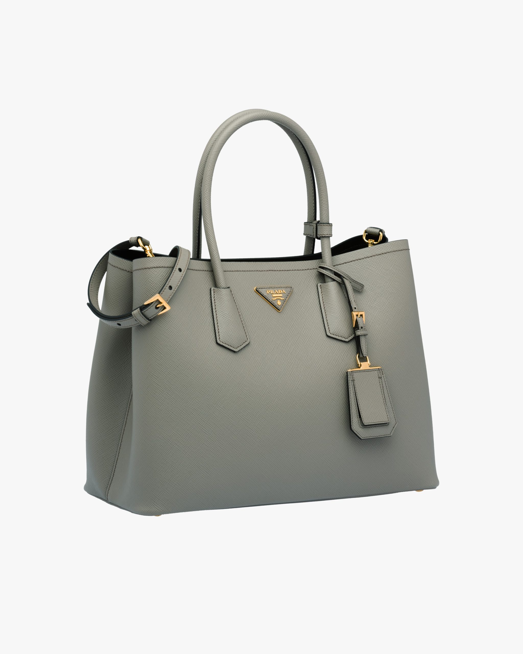 Slate/black Medium Saffiano Leather Double Prada Bag
