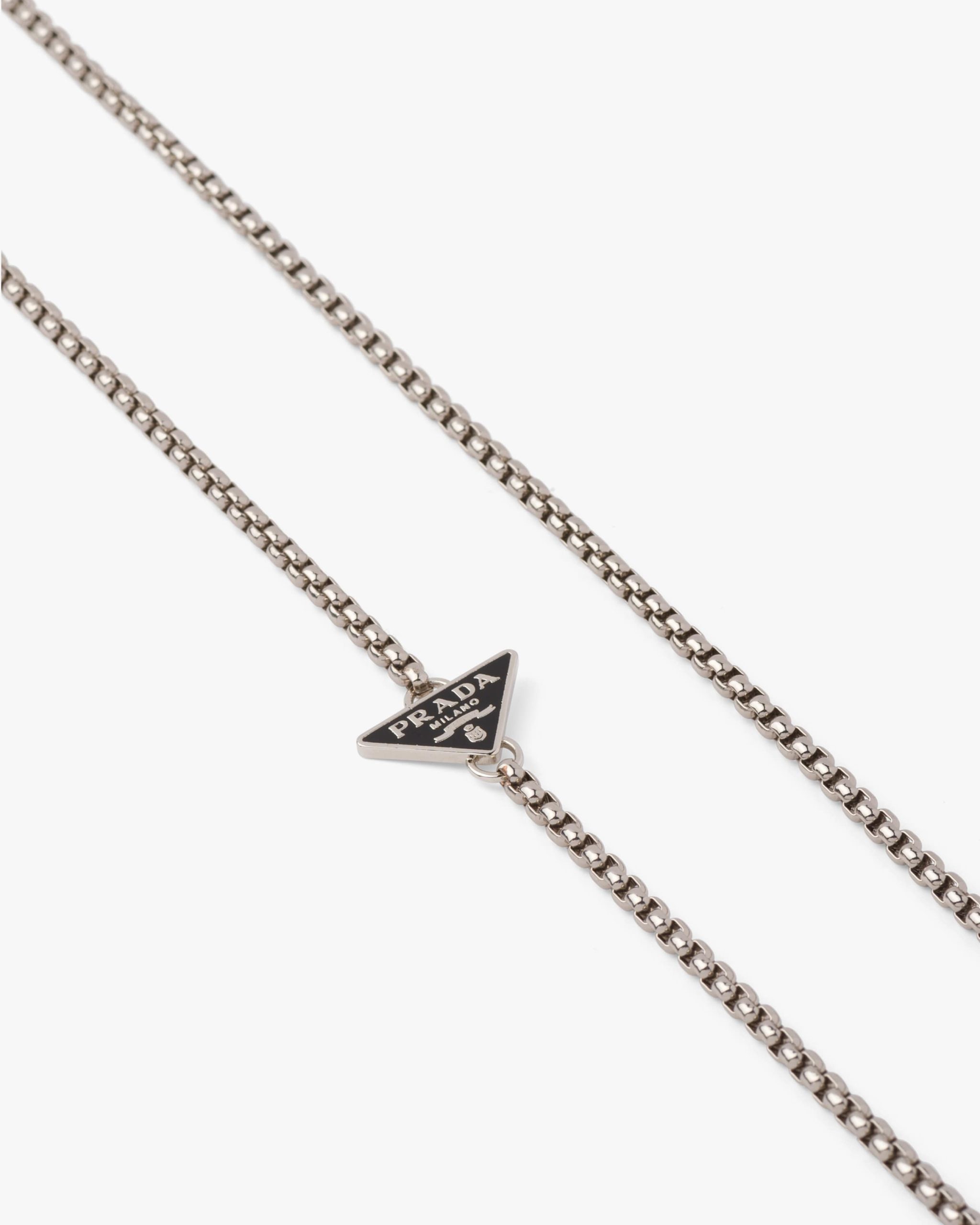 An iconic part of the brand?? make-up, originating from the trunks designed by Mario Prada, the triangle logo2 is given a modern twist and adorns a headphone holder chain for AirPods and AirPods pro.