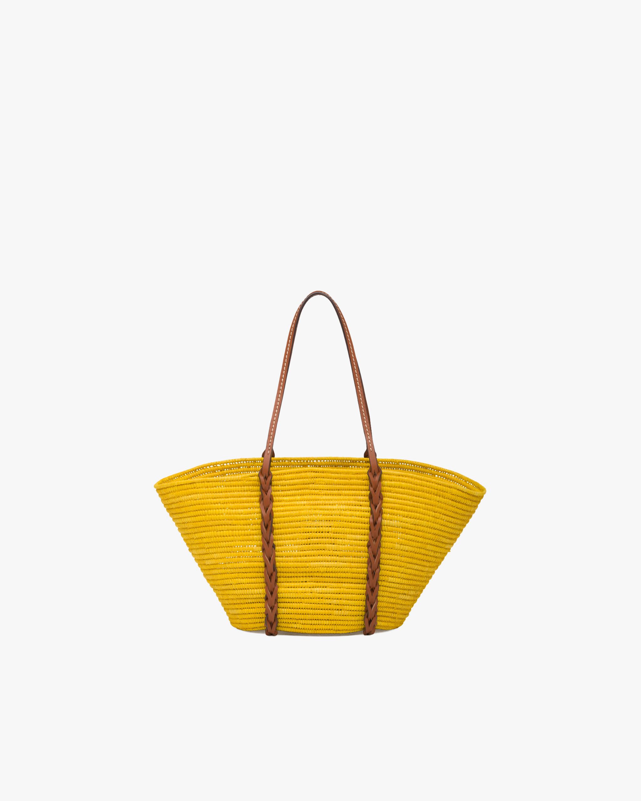 Sunny Yellow/cognac Straw and Leather Tote