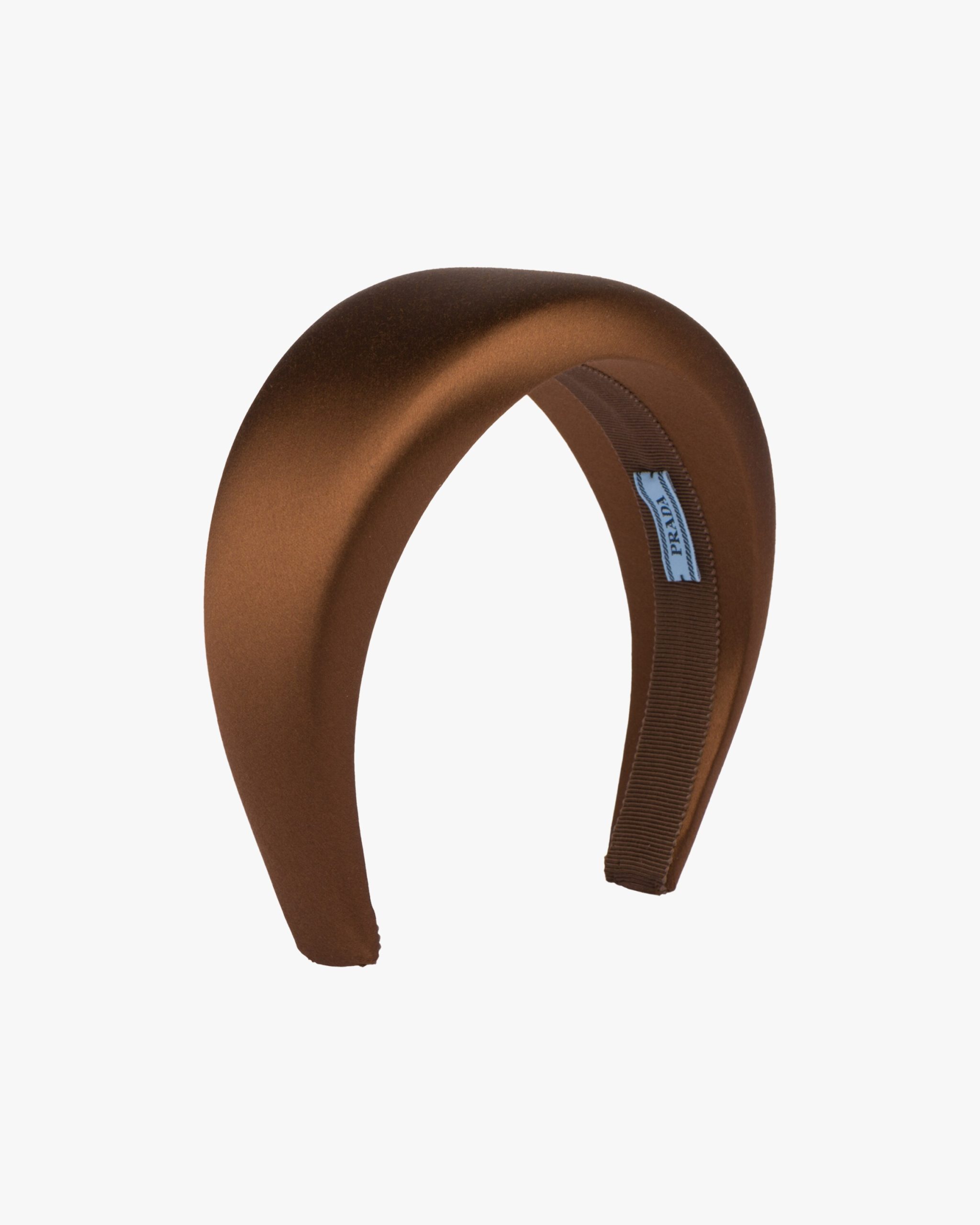 This wide satin headband has a wraparound design that gives a refined touch to the look.