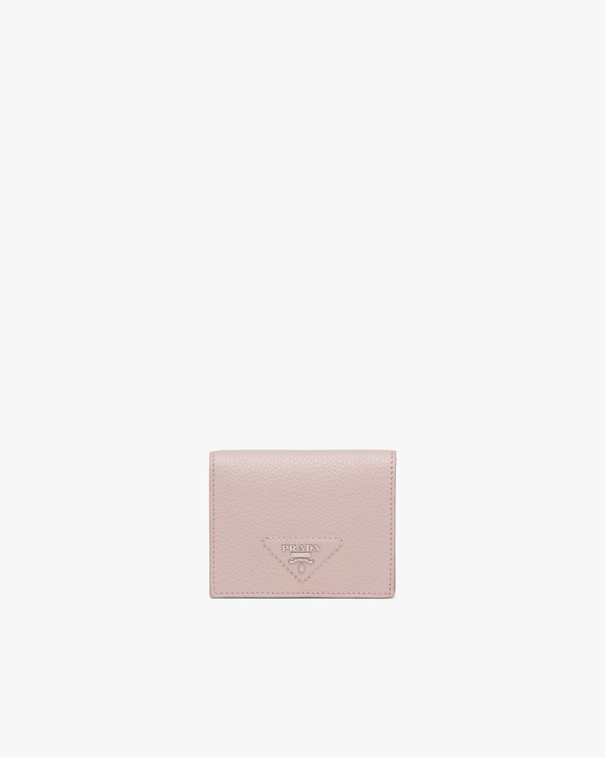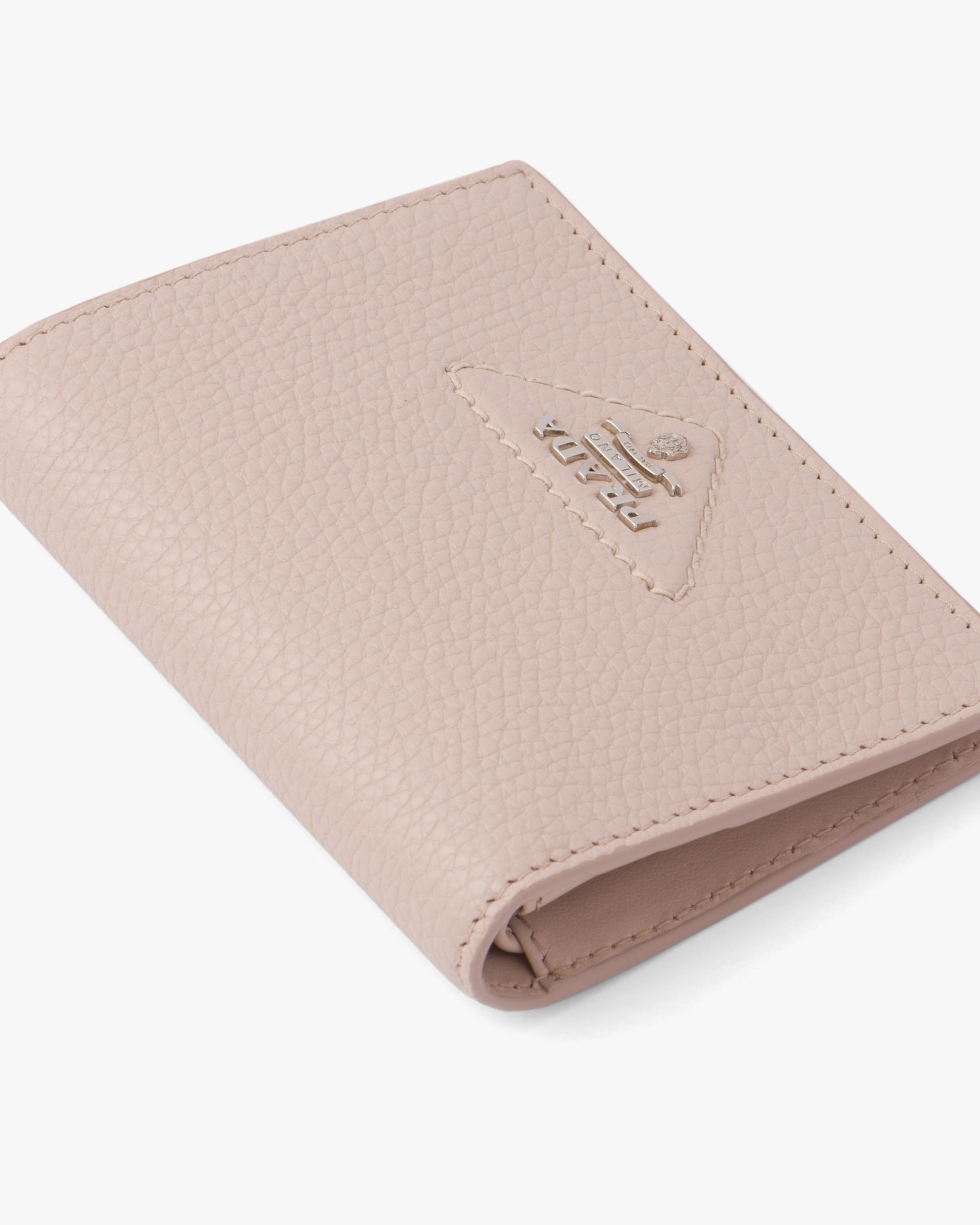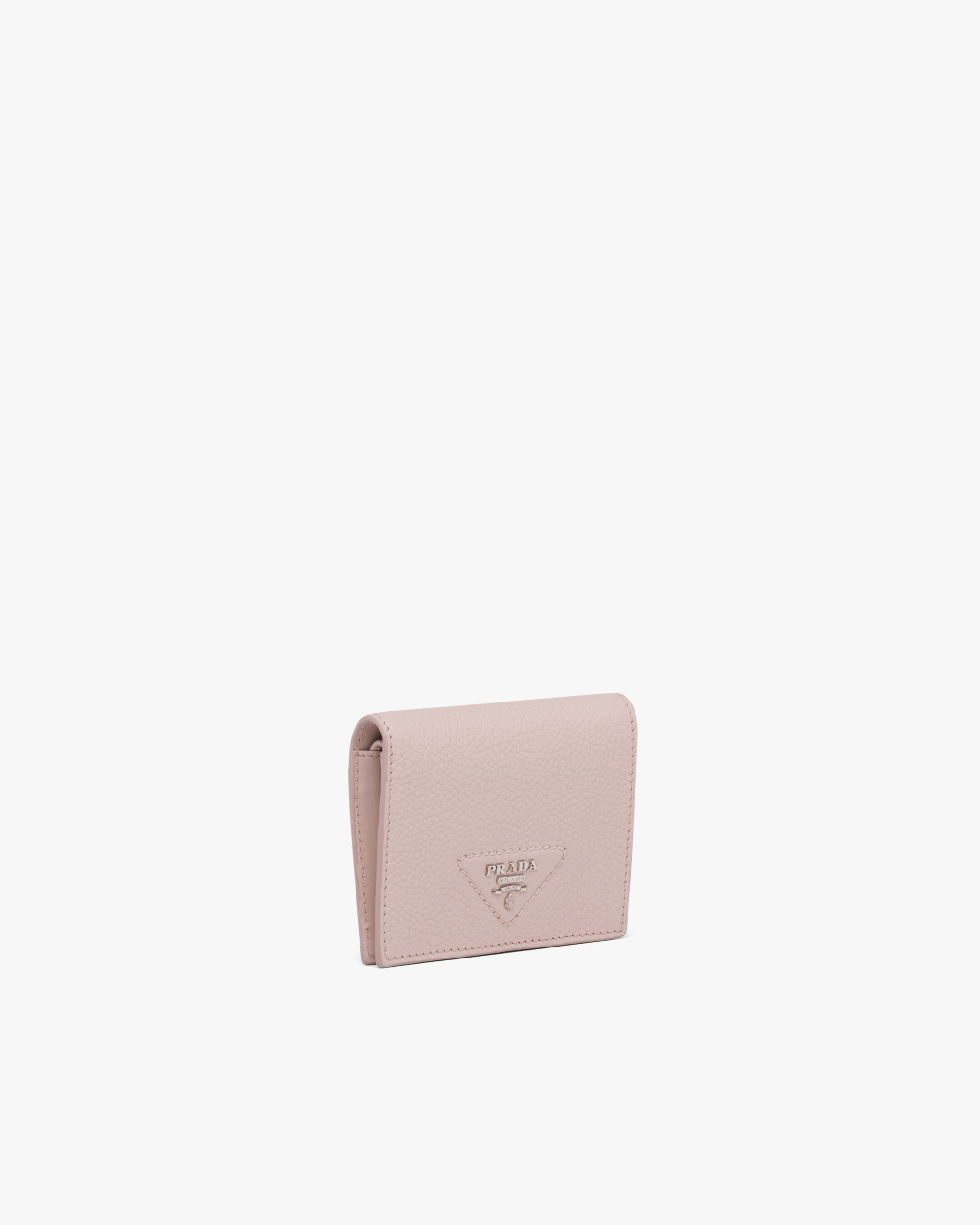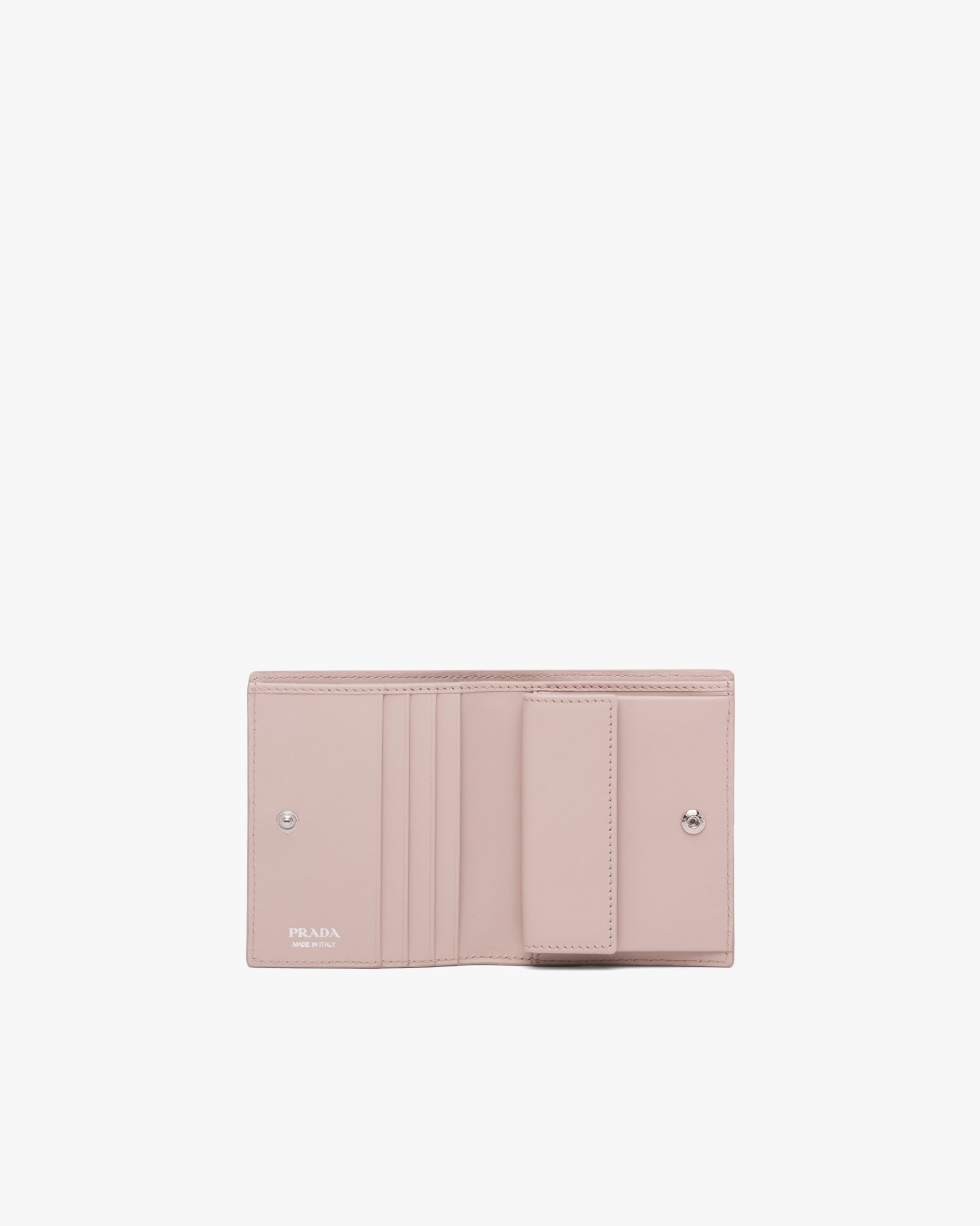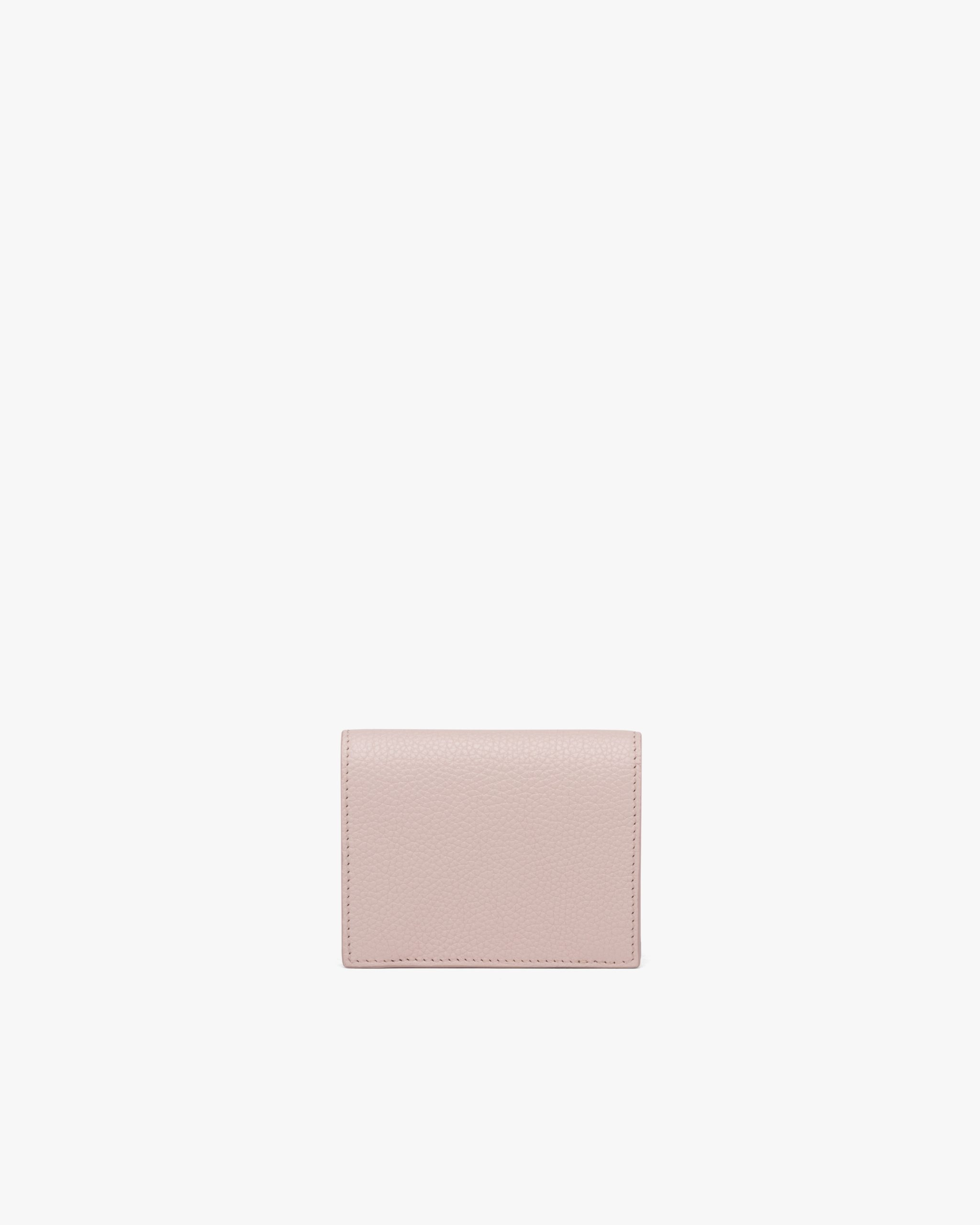 This small leather wallet has several internal pockets and card slots. The accessory with snap closure is decorated with the metal lettering logo2.