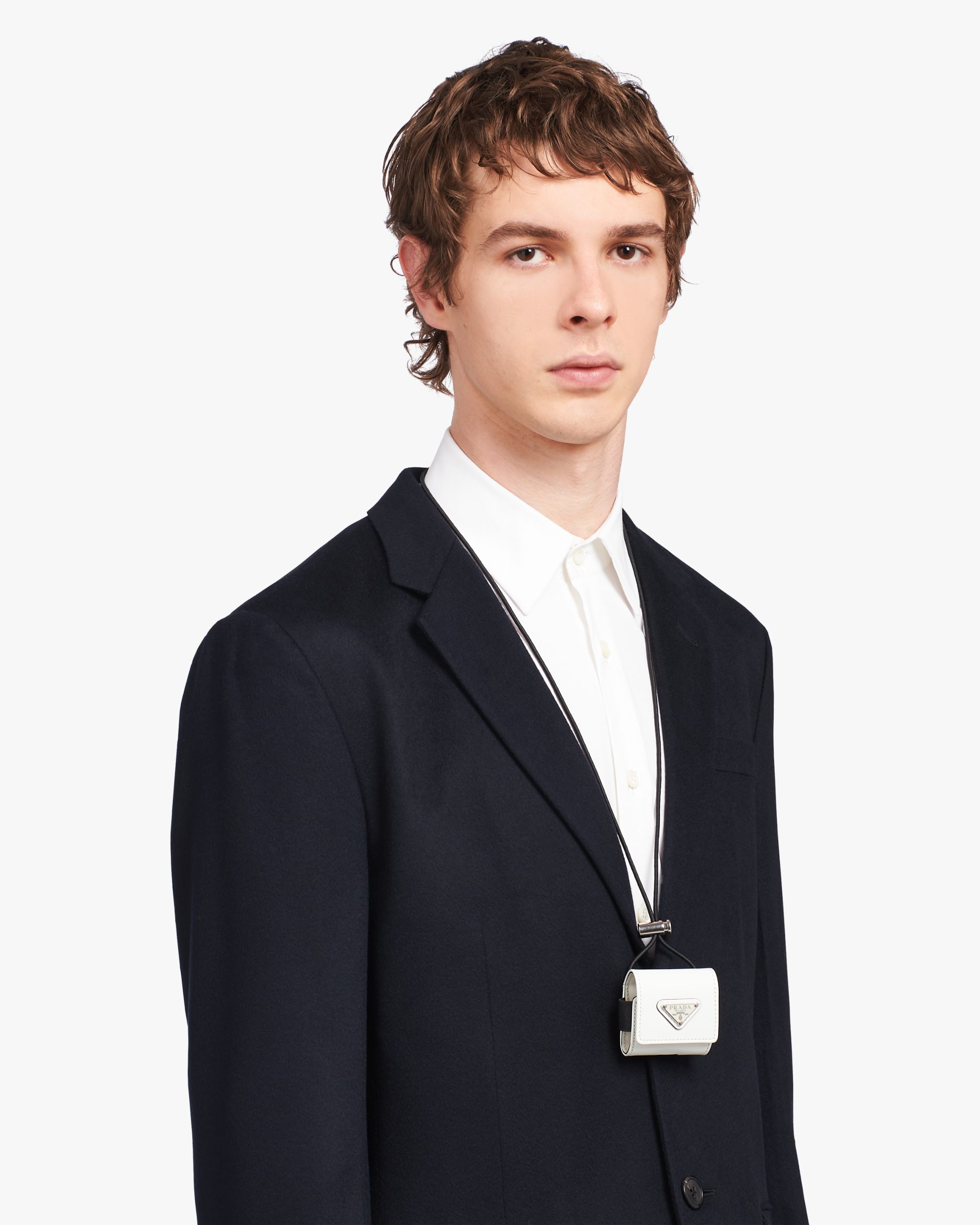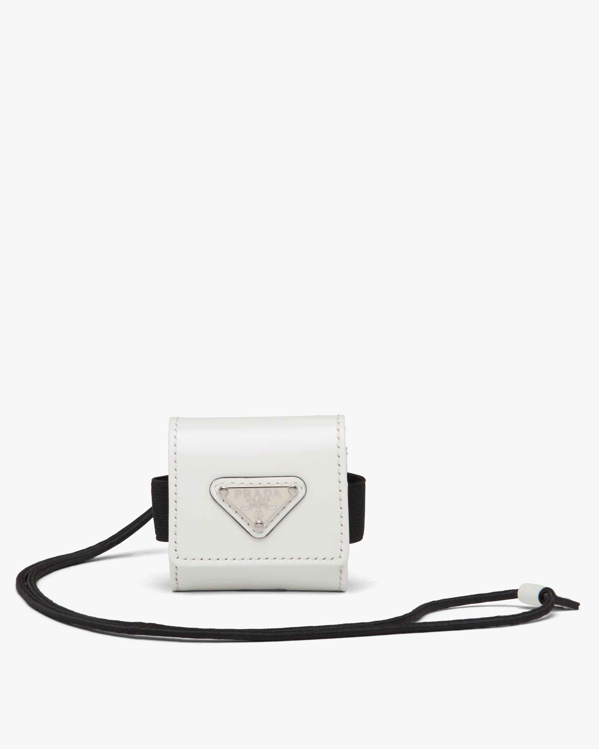 Technology, innovation and tradition come together in this AirPods Pro case made of brushed leather: an iconic material of the brand since the ’90s and historically linked to the luxury world. The accessory is decorated with the enameled metal triangle logo2.