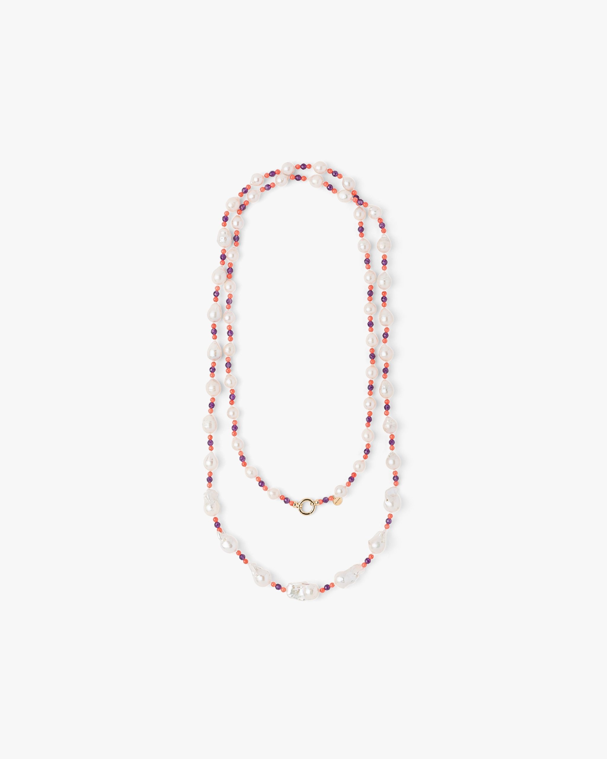 White/amethyst Prada Fine Jewellery gold and pearl necklace