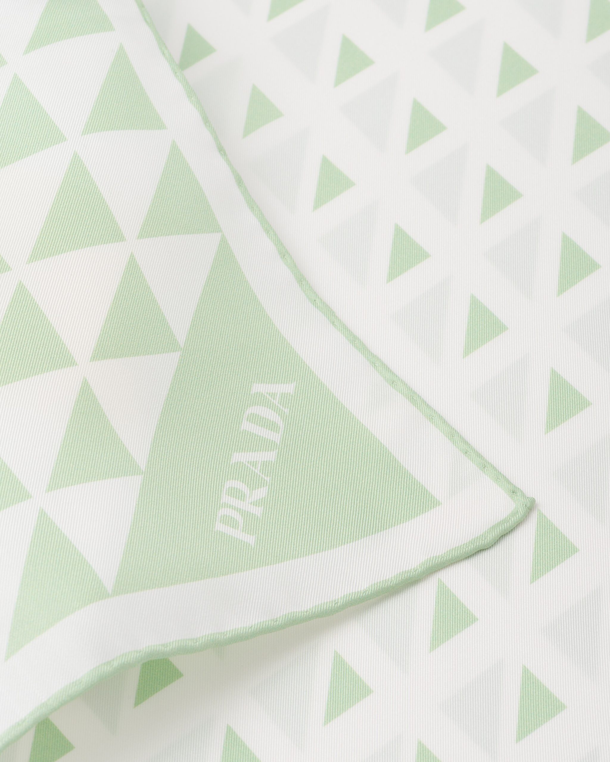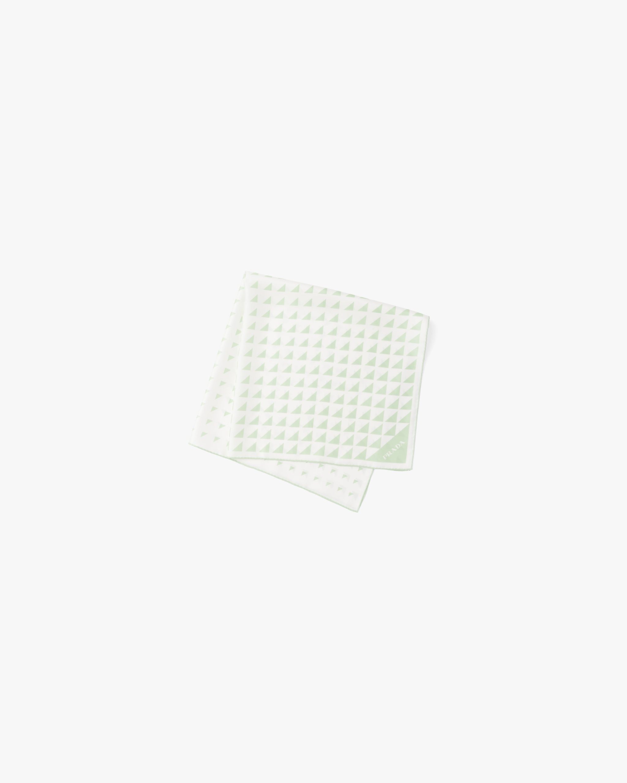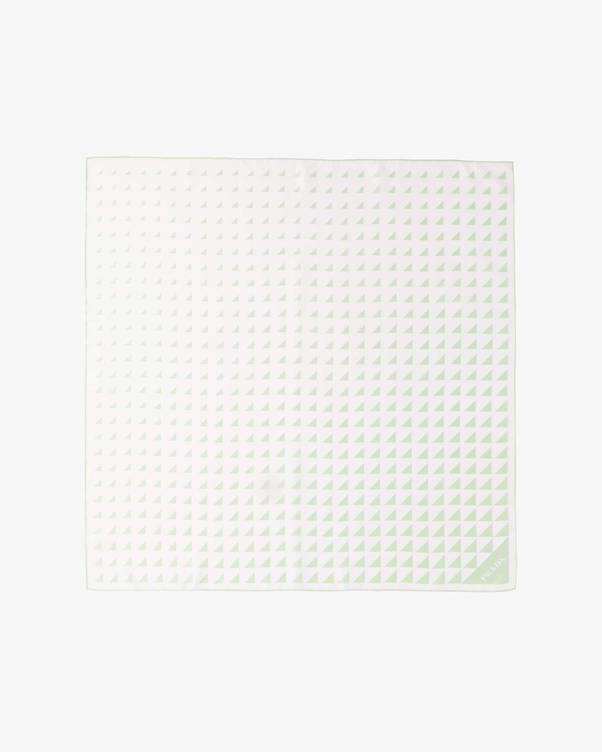 The triangle, Prada’s iconic logo2 since 1913, is reimagined in always new ways and is found in the nuanced pattern on this twill scarf.