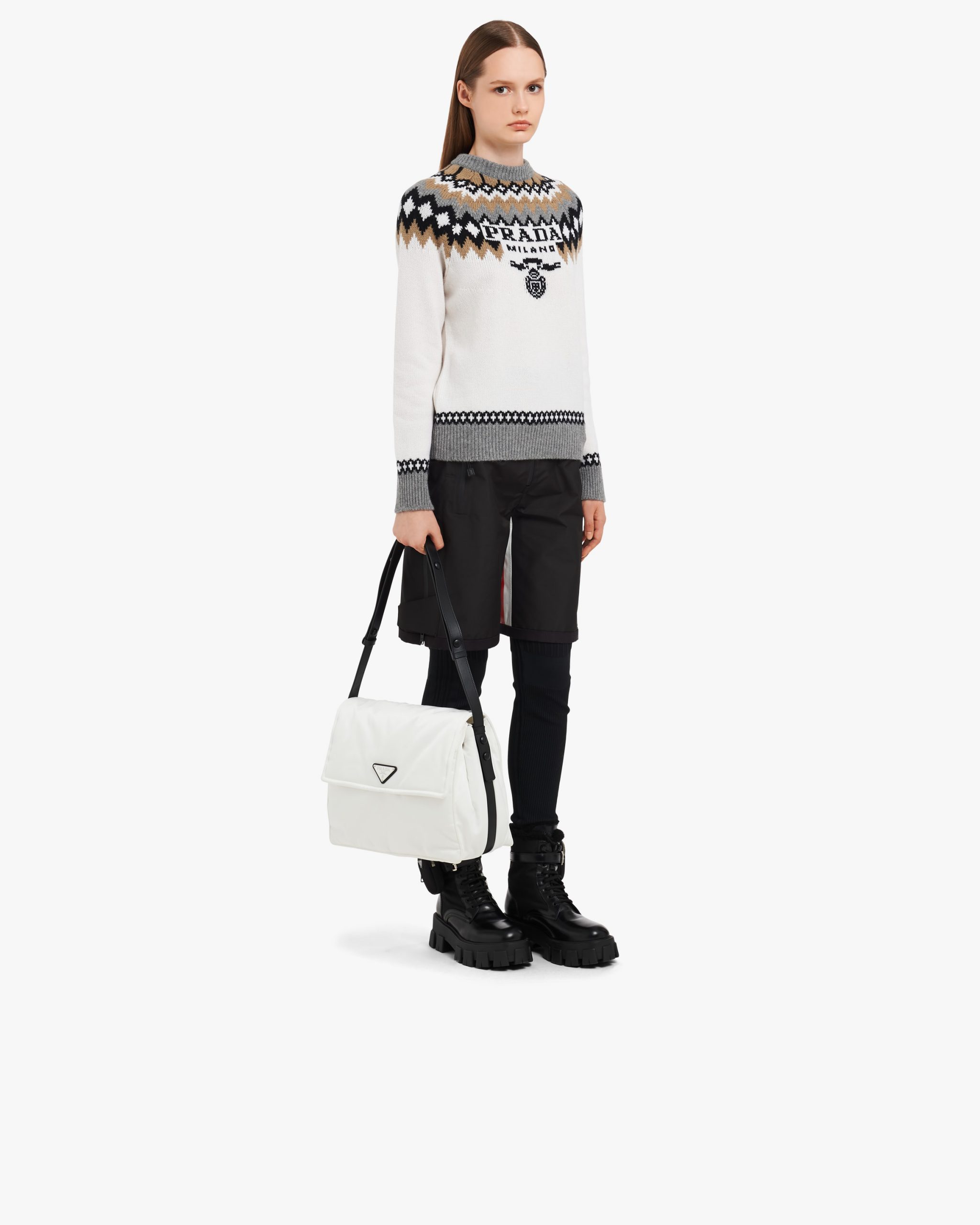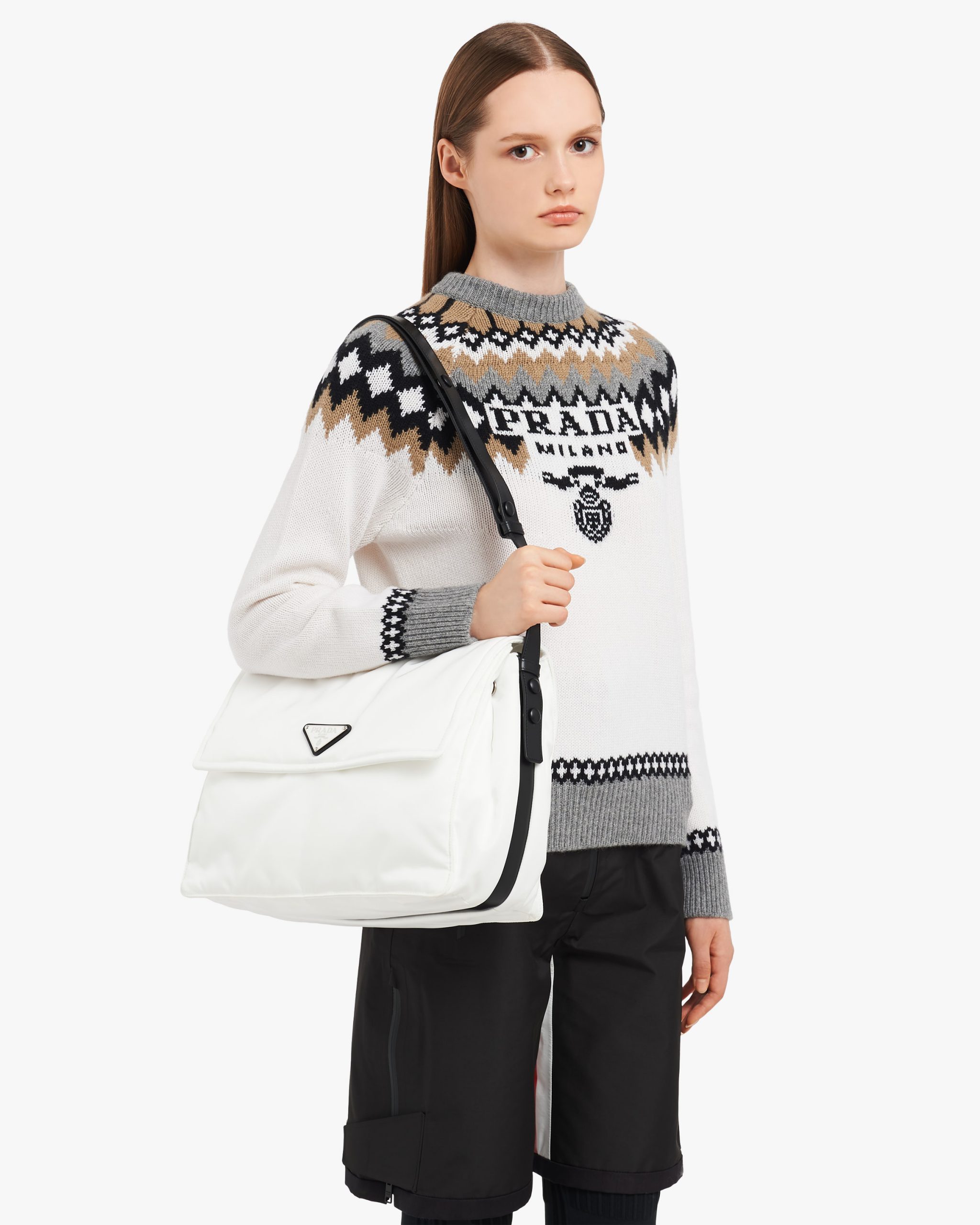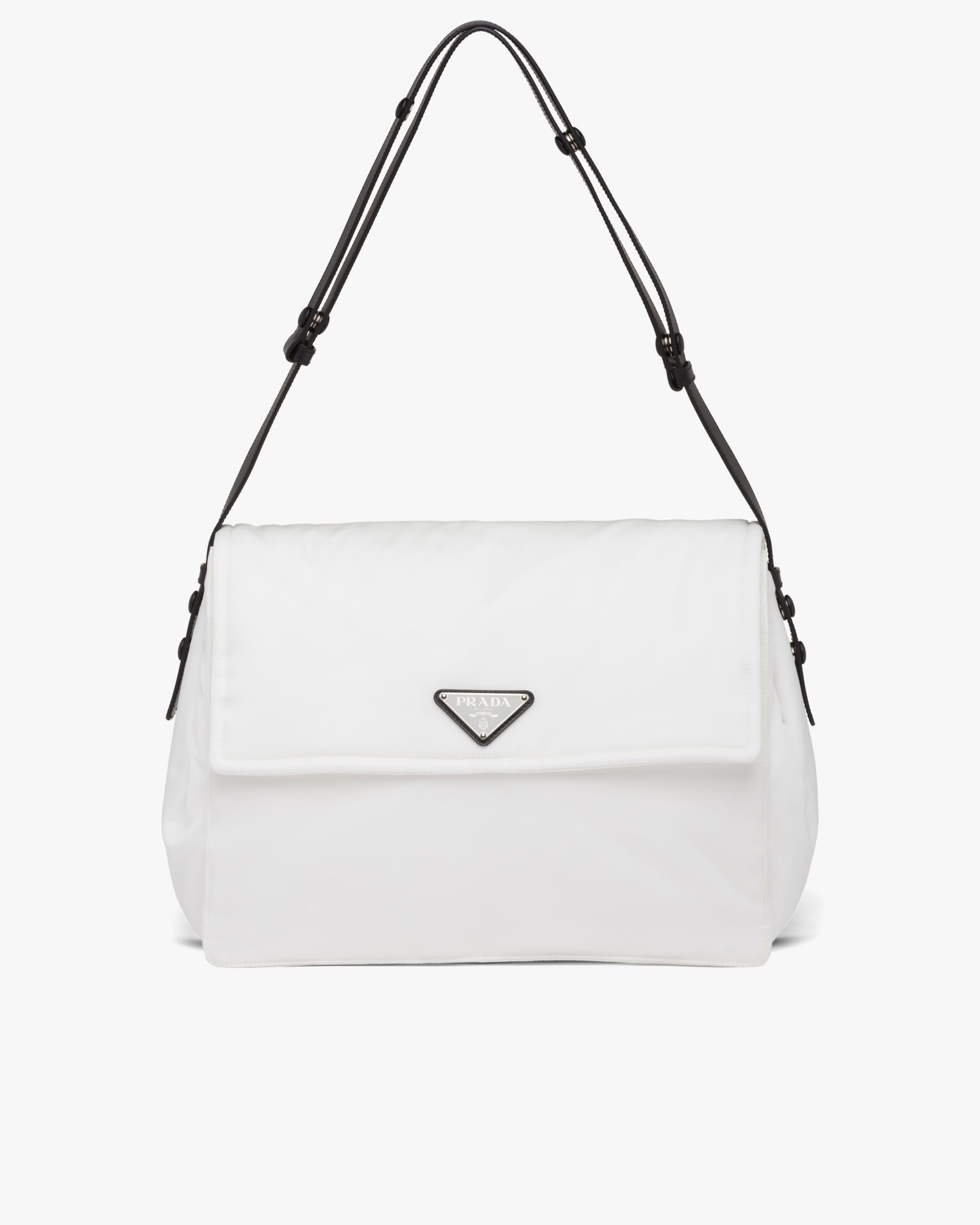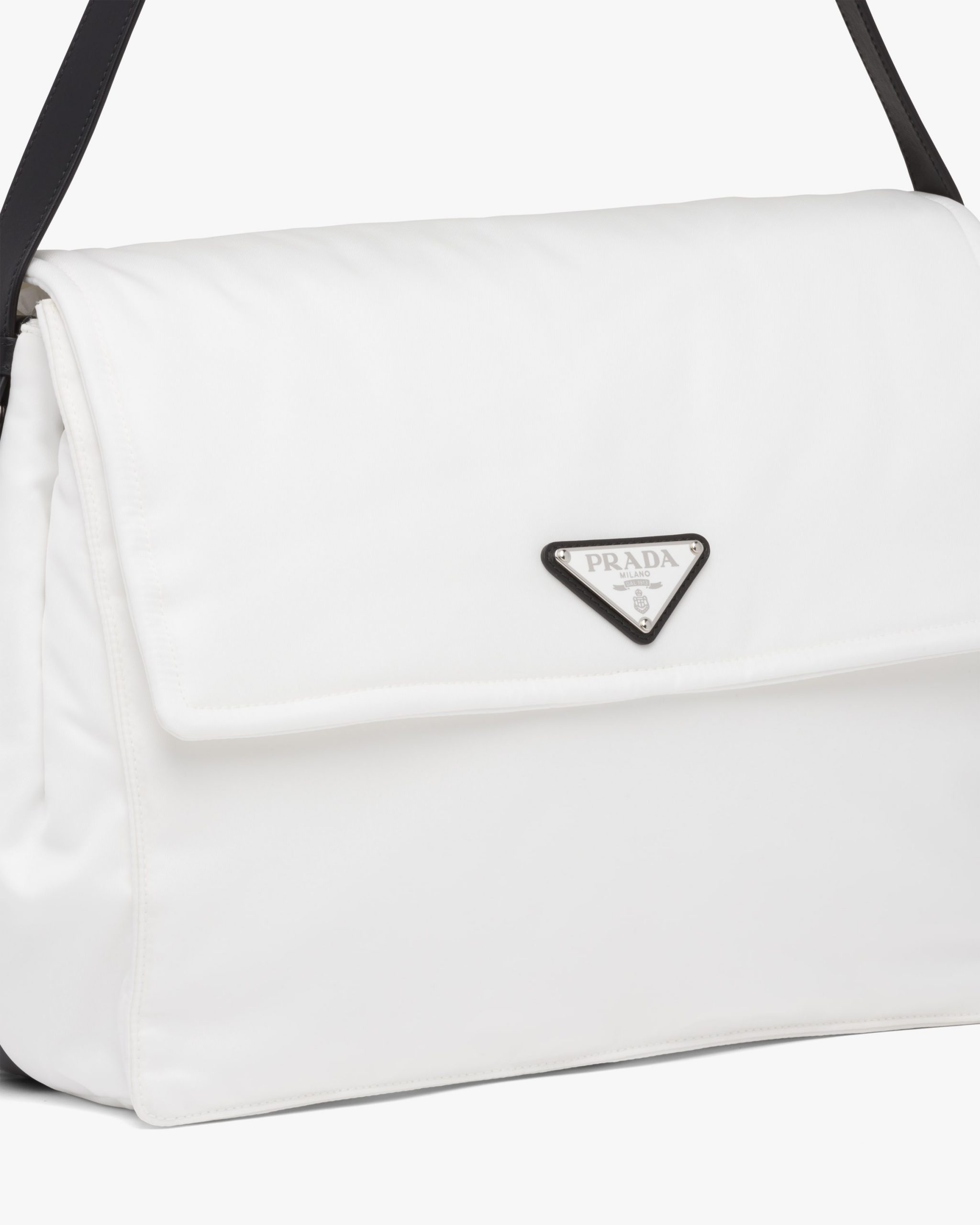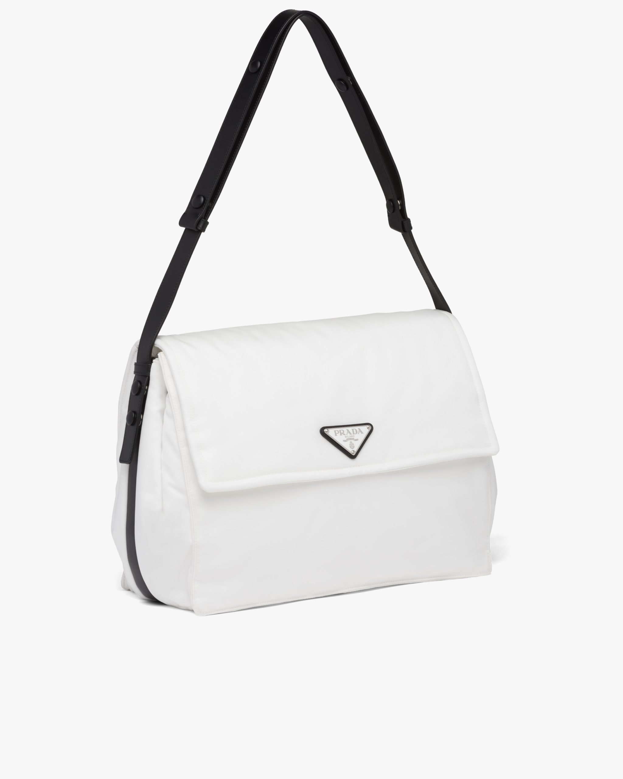 White/black Large padded Re-Nylon shoulder bag