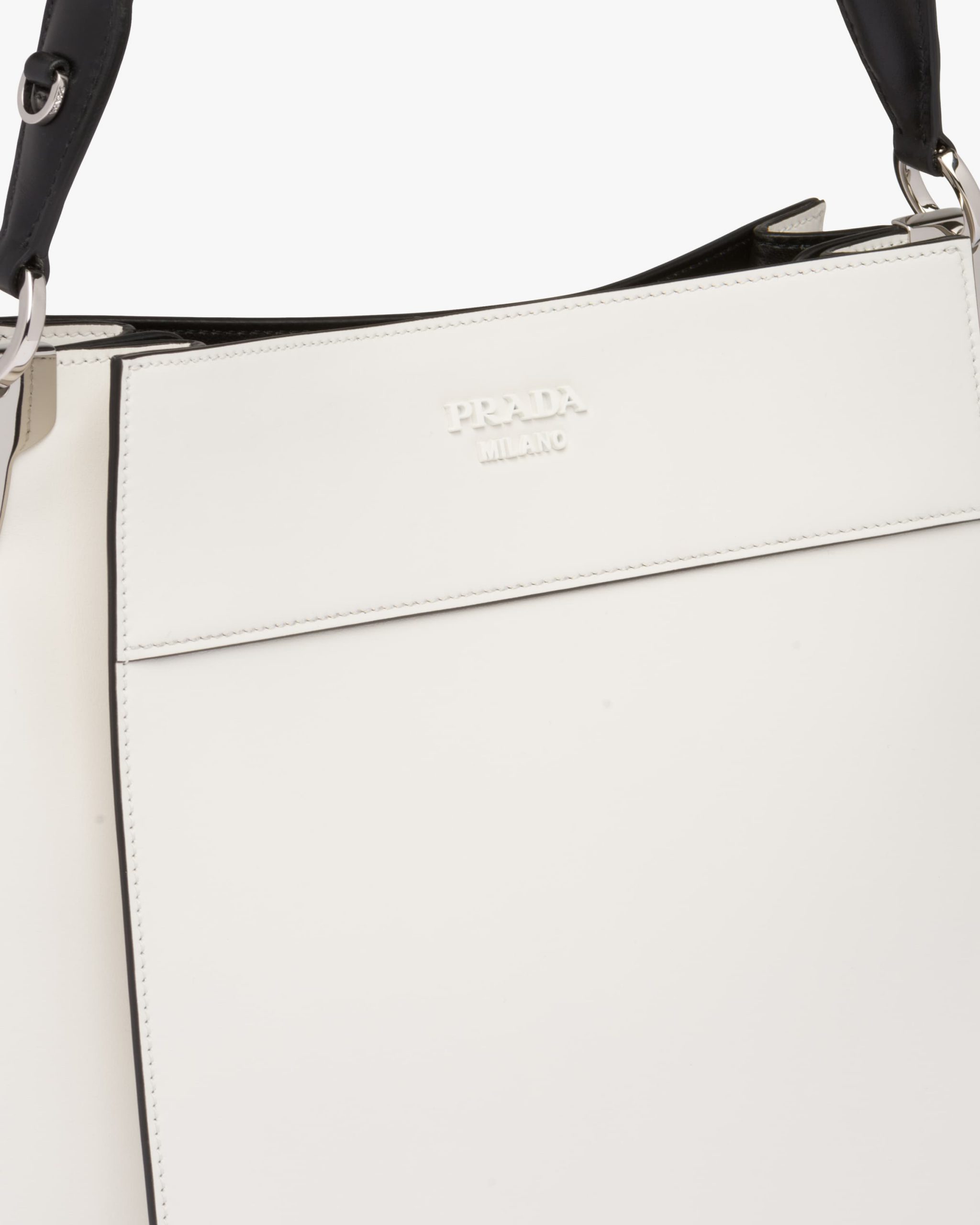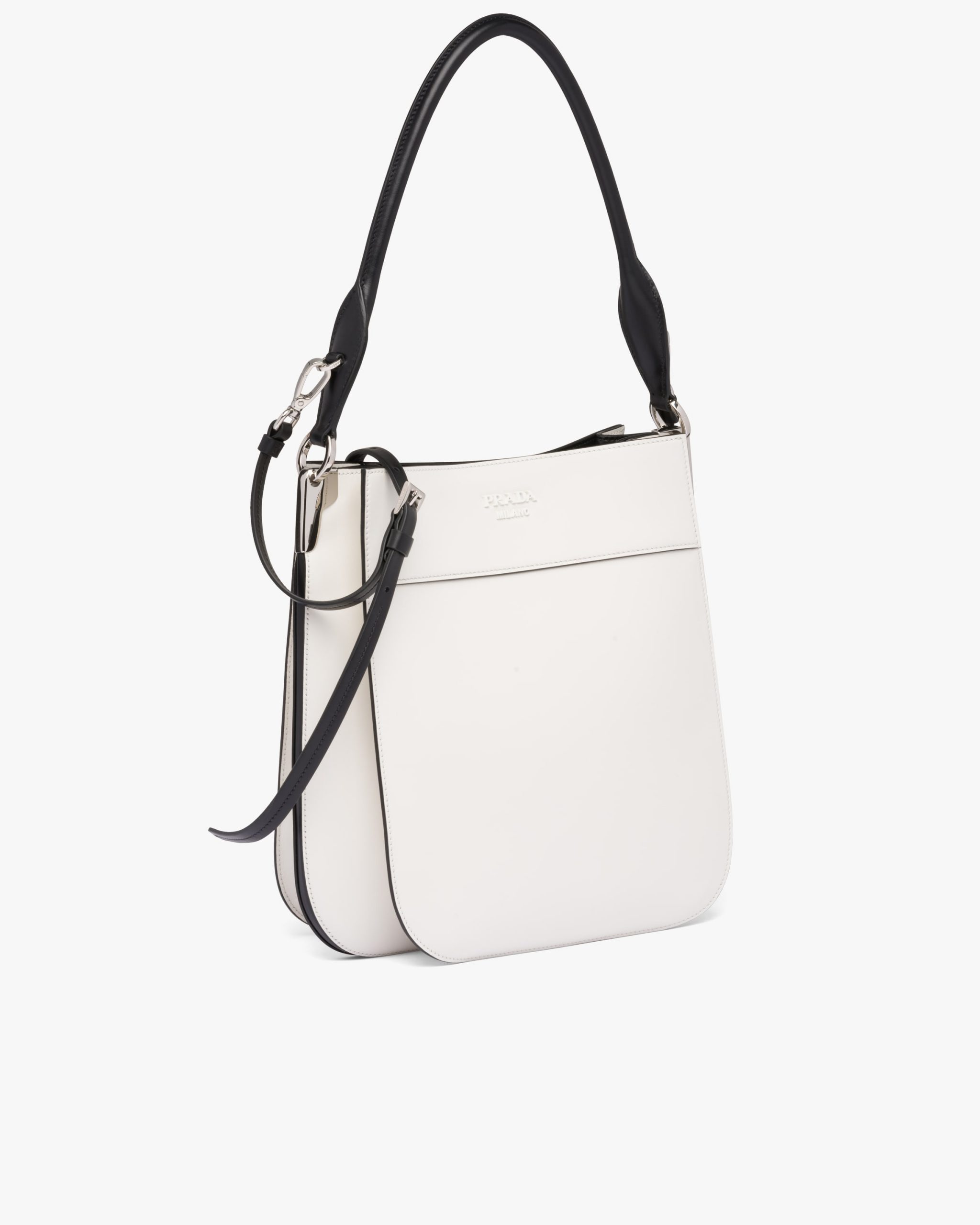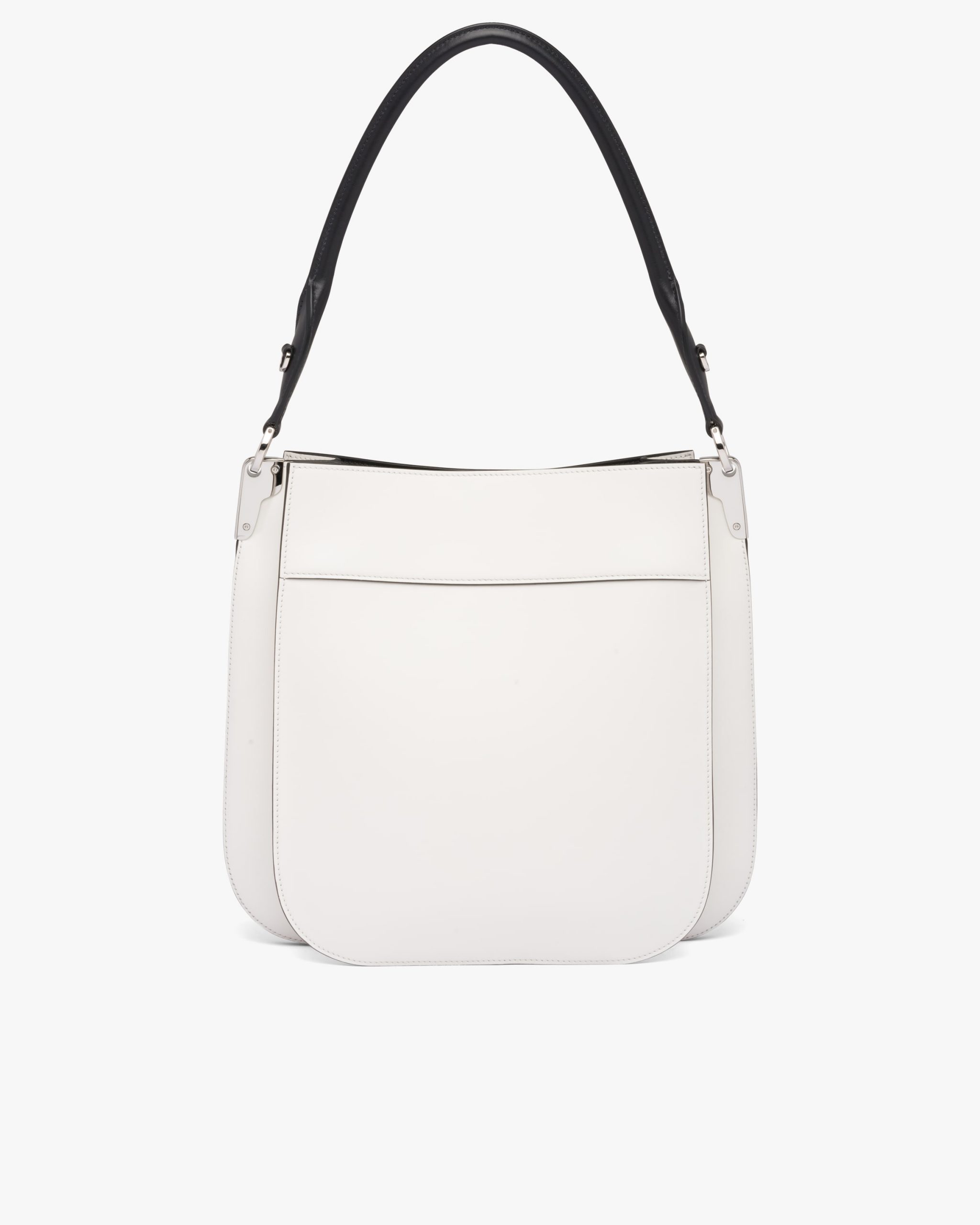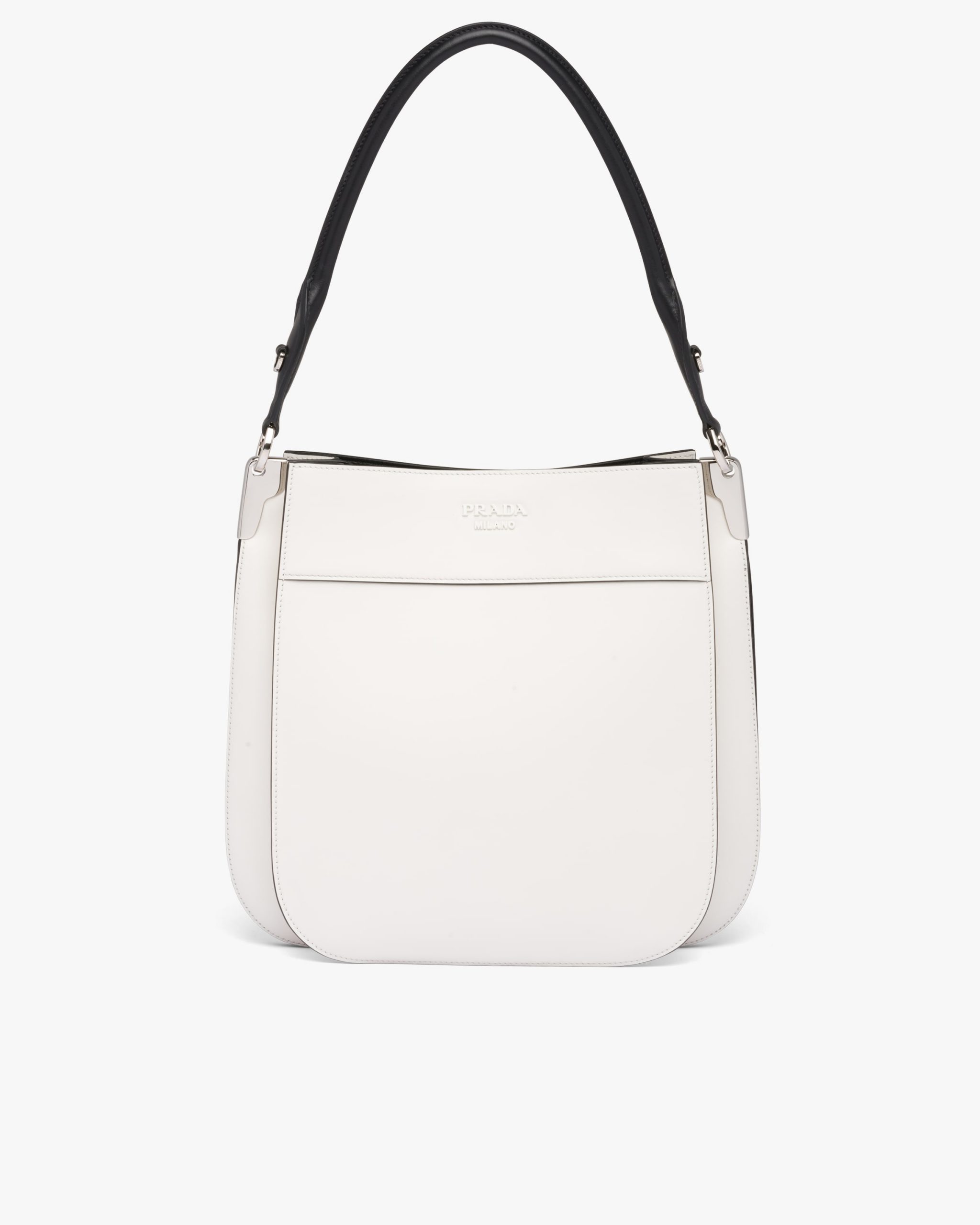 The Prada Margit shoulder bag has an iconic design. The leather bag comes with a shoulder strap.