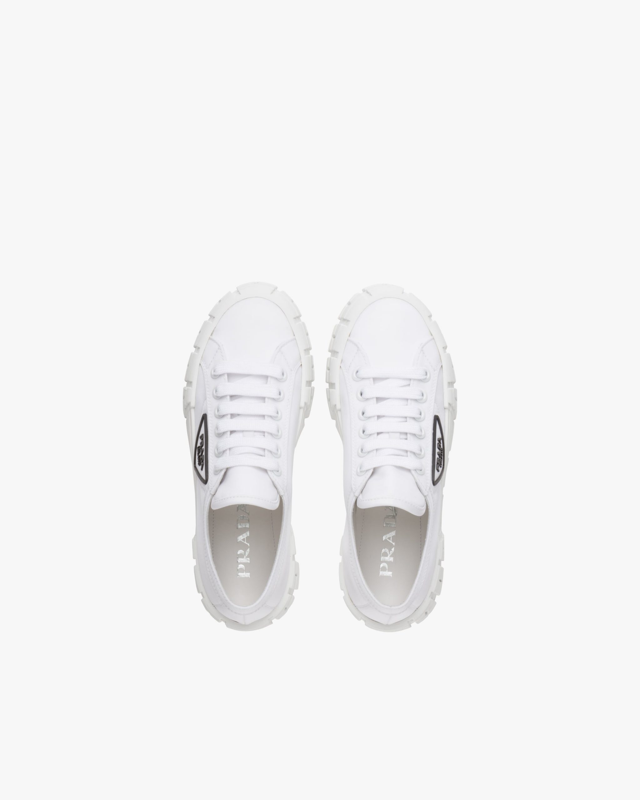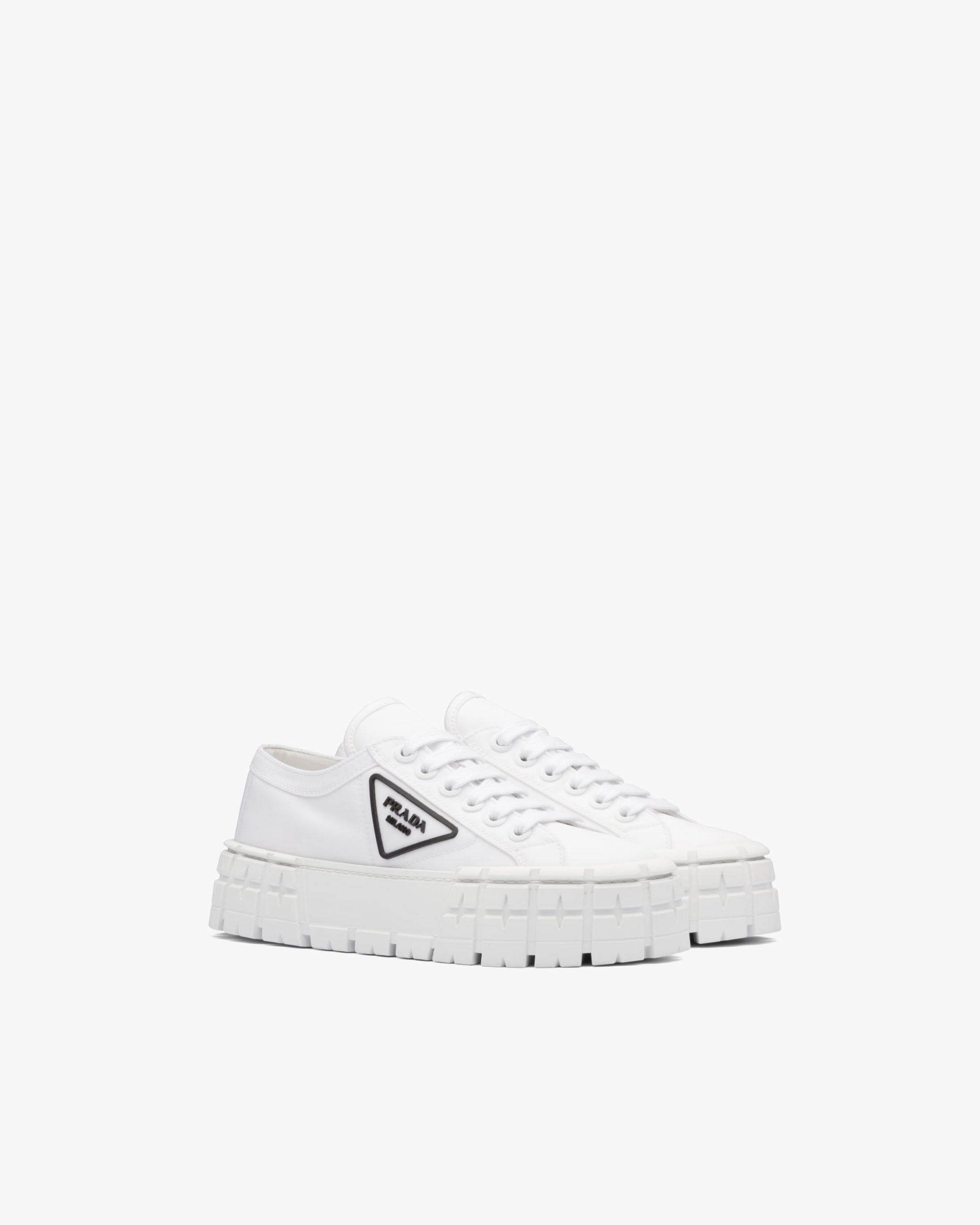 The rubber platform inspired by motocross tires defines the unusual design of these nylon gabardine sneakers. The logo2 triangle decorates the side of the shoe.