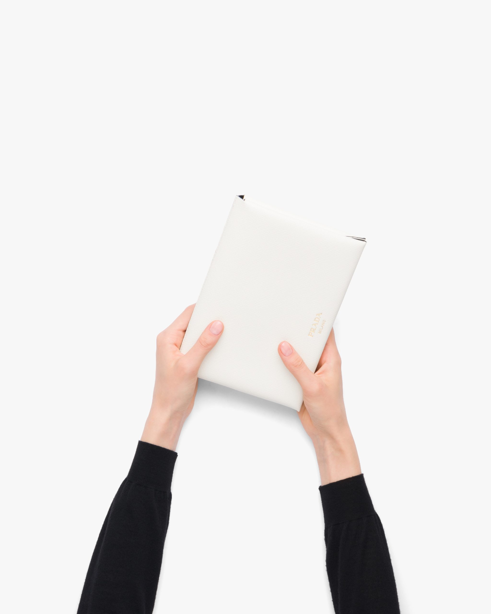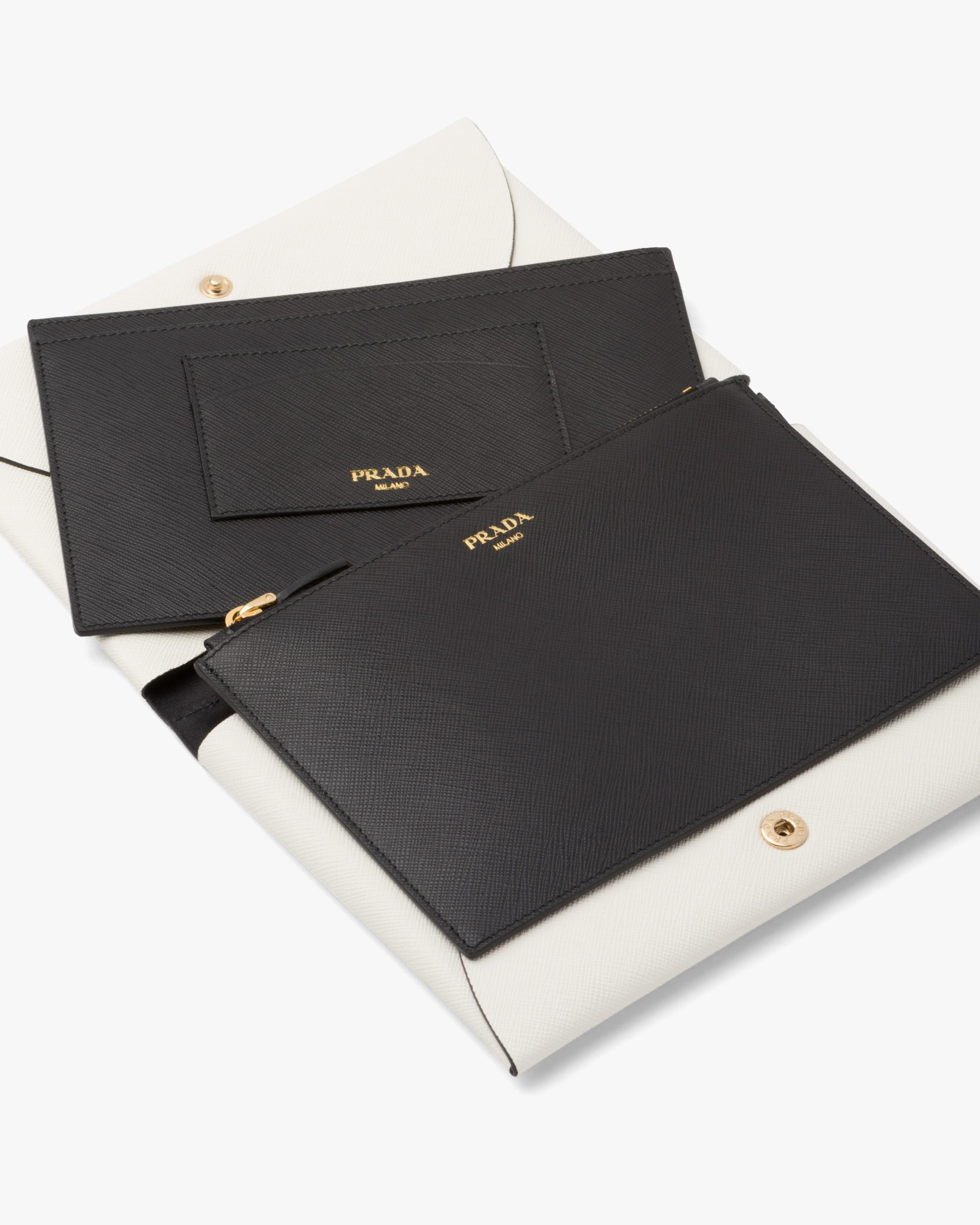 White/black Small Saffiano leather document holder