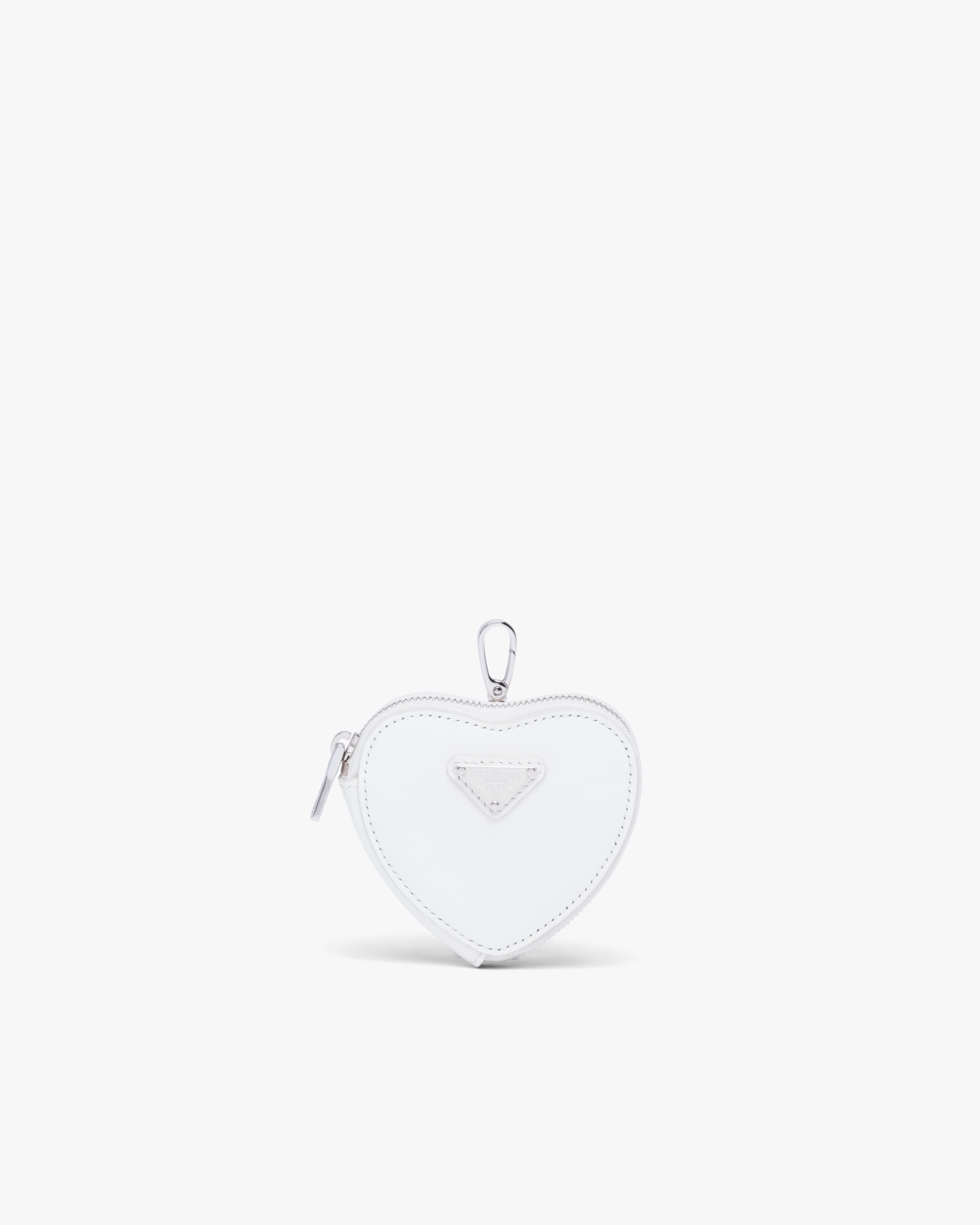 White Brushed leather heart mini-pouch