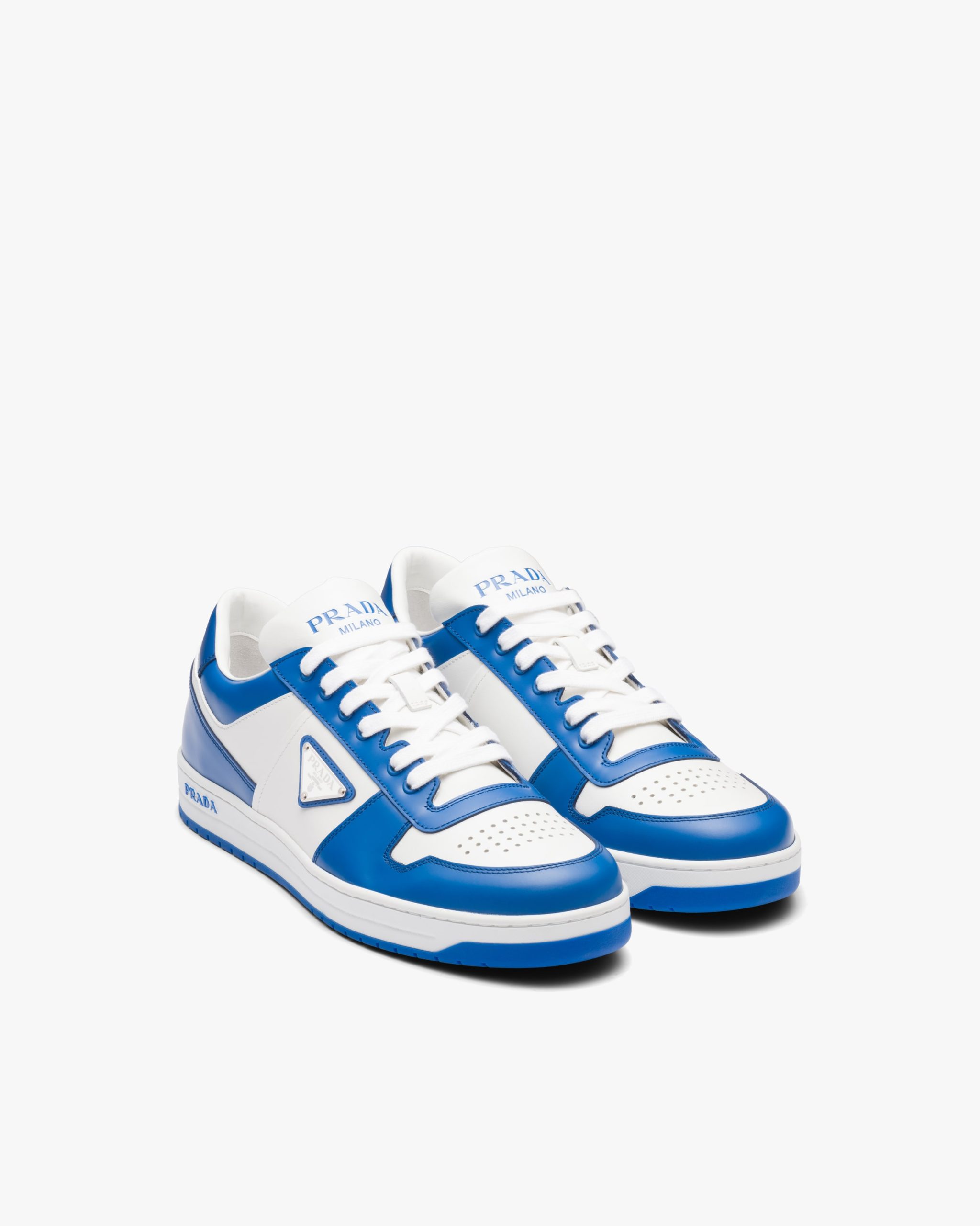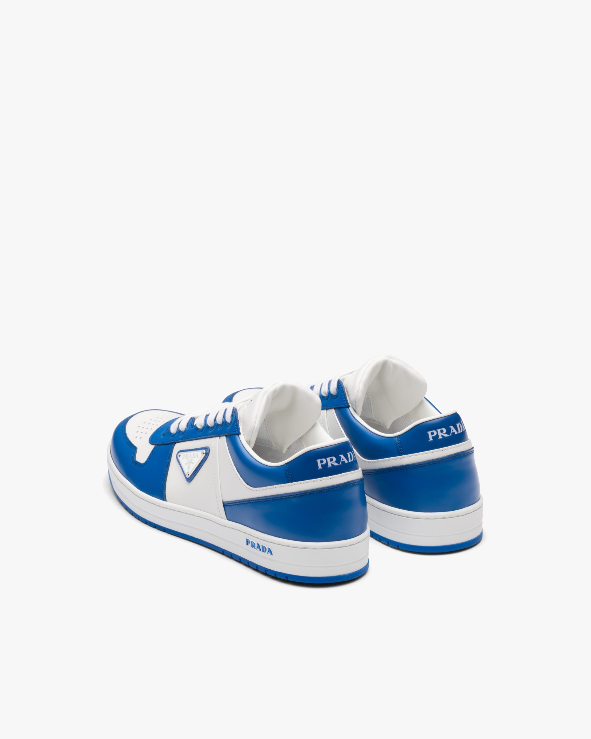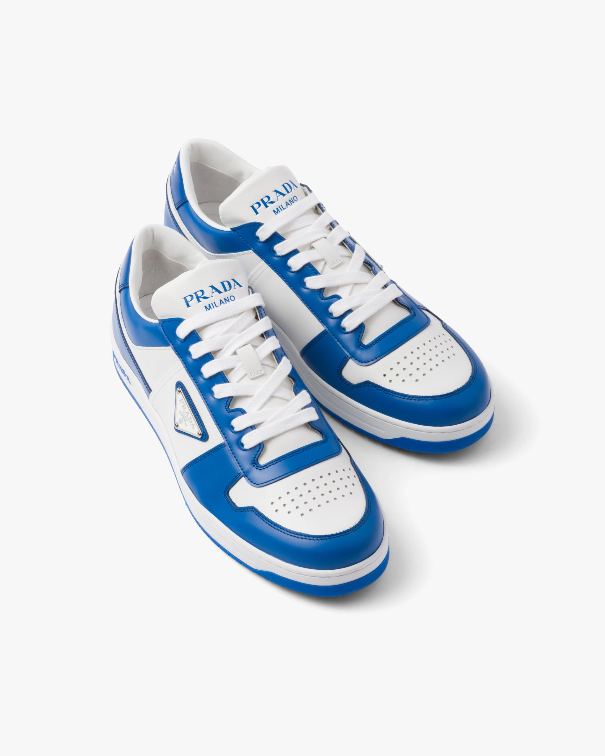 These sporty leather sneakers are accented with different interpretations of the Prada logo2 that appears on the tongue, along the light rubber sole, and as the iconic enameled metal triangle decorating the side of the upper.