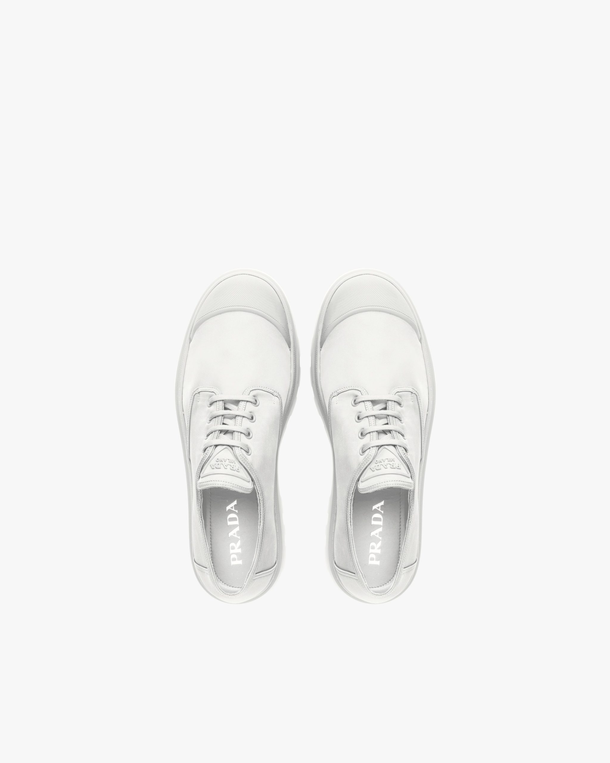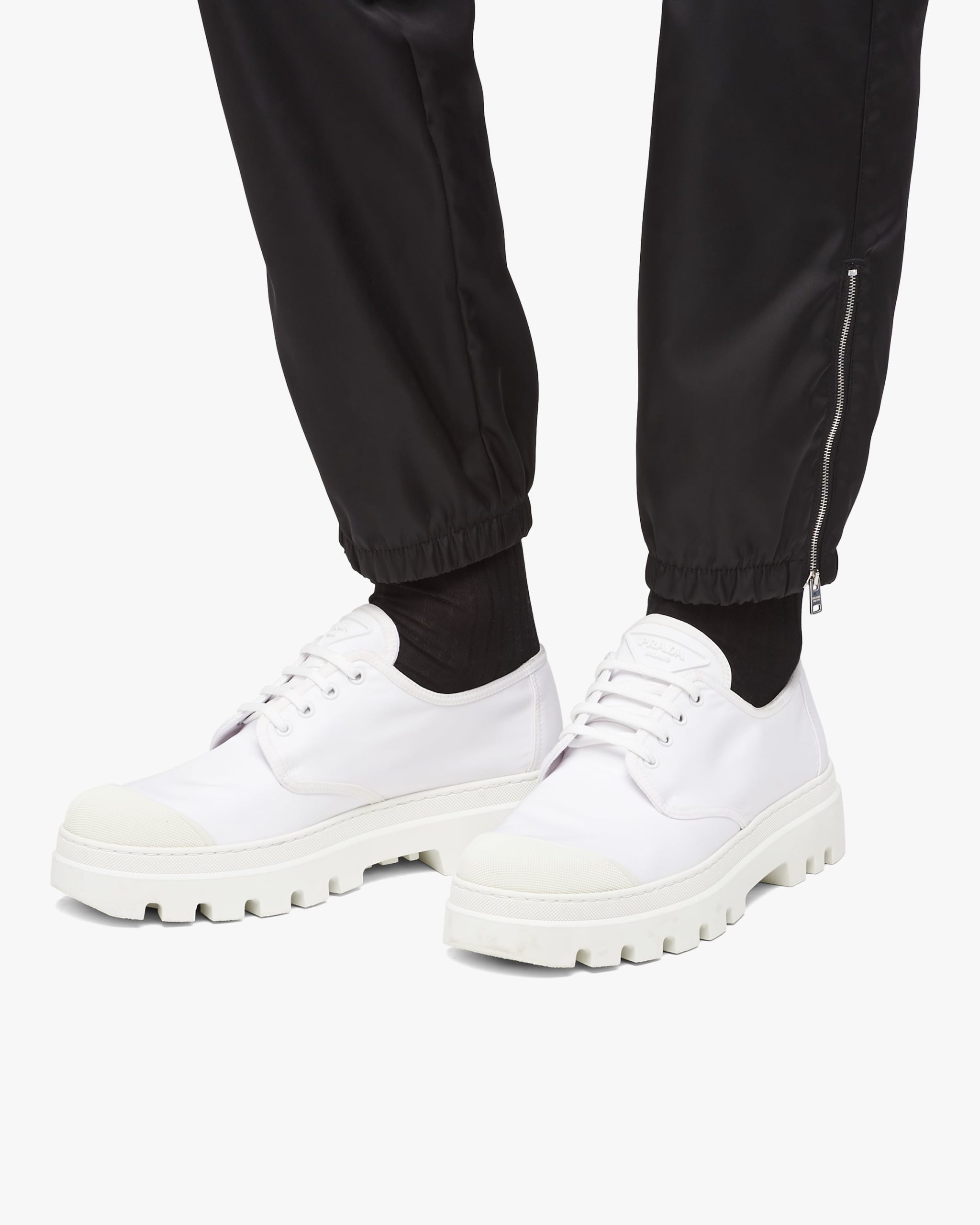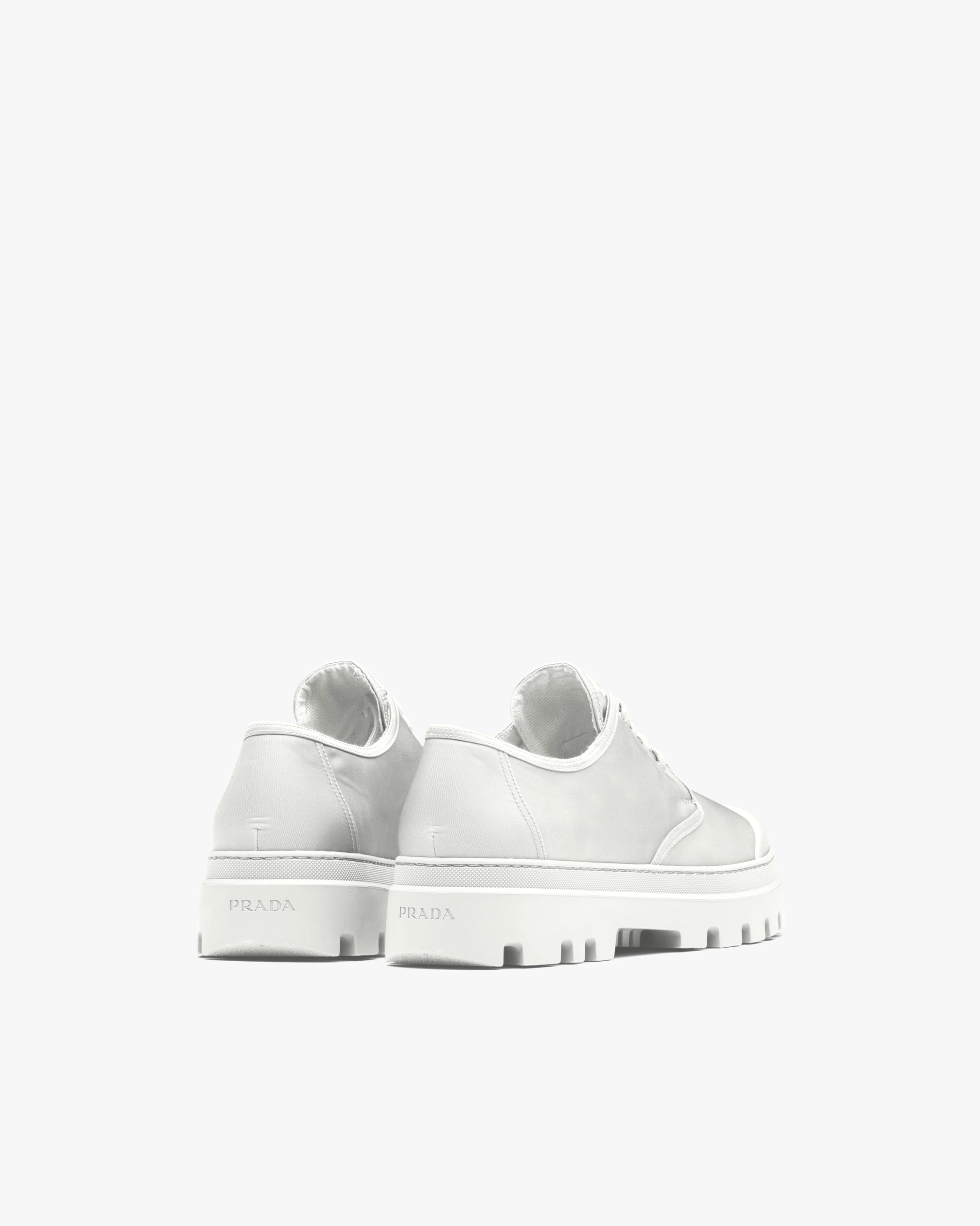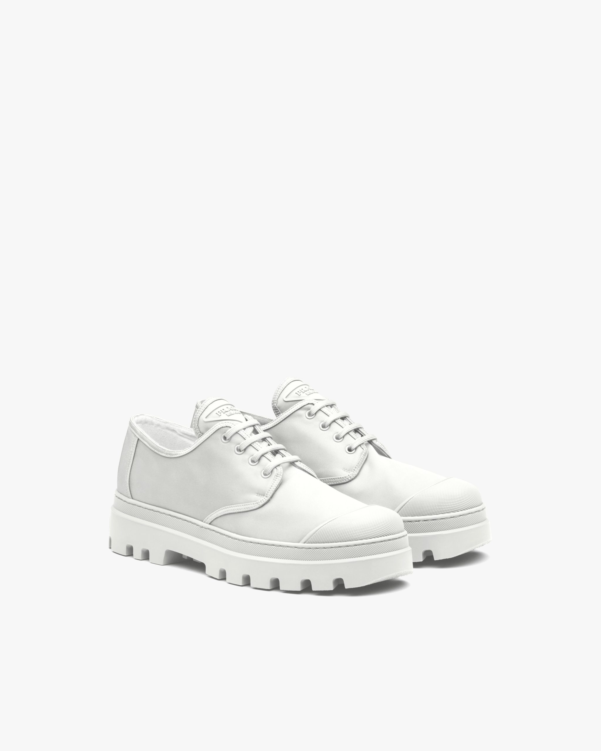 The lace-up Derby shoe is given a contemporary update with a play of different volumes and materials. The distinctive rubber toe cap contrasts with the nylon upper decorated with the triangle logo2 on the tongue. A thick rubber tread sole completes the shoe.