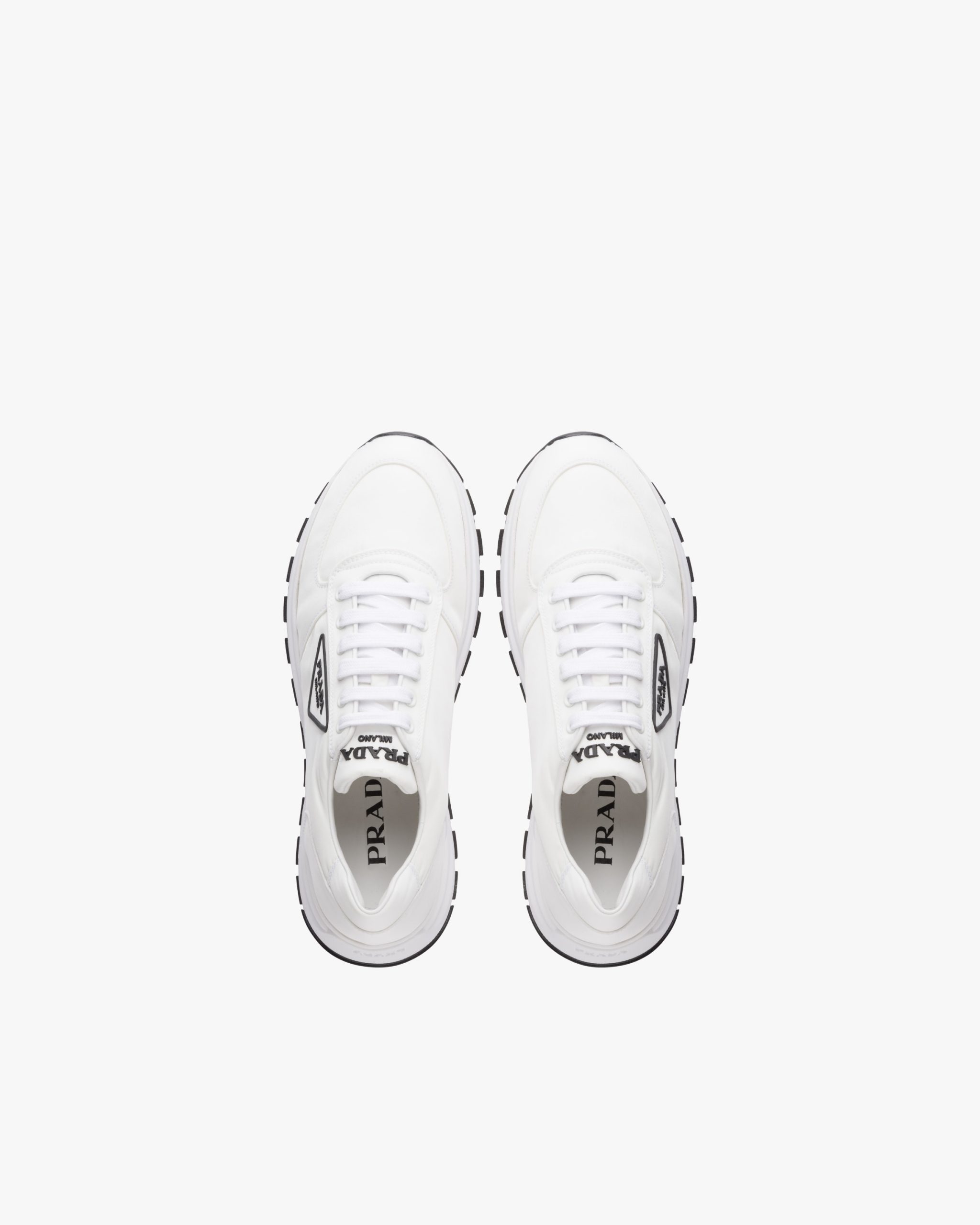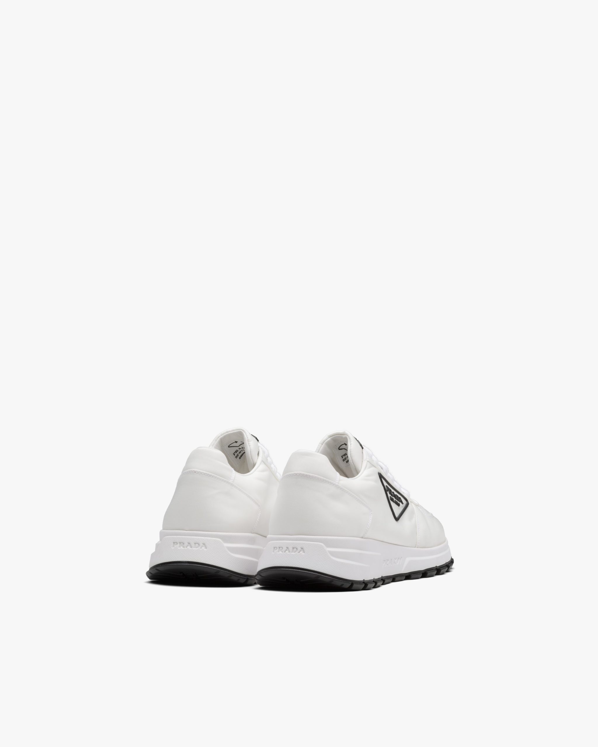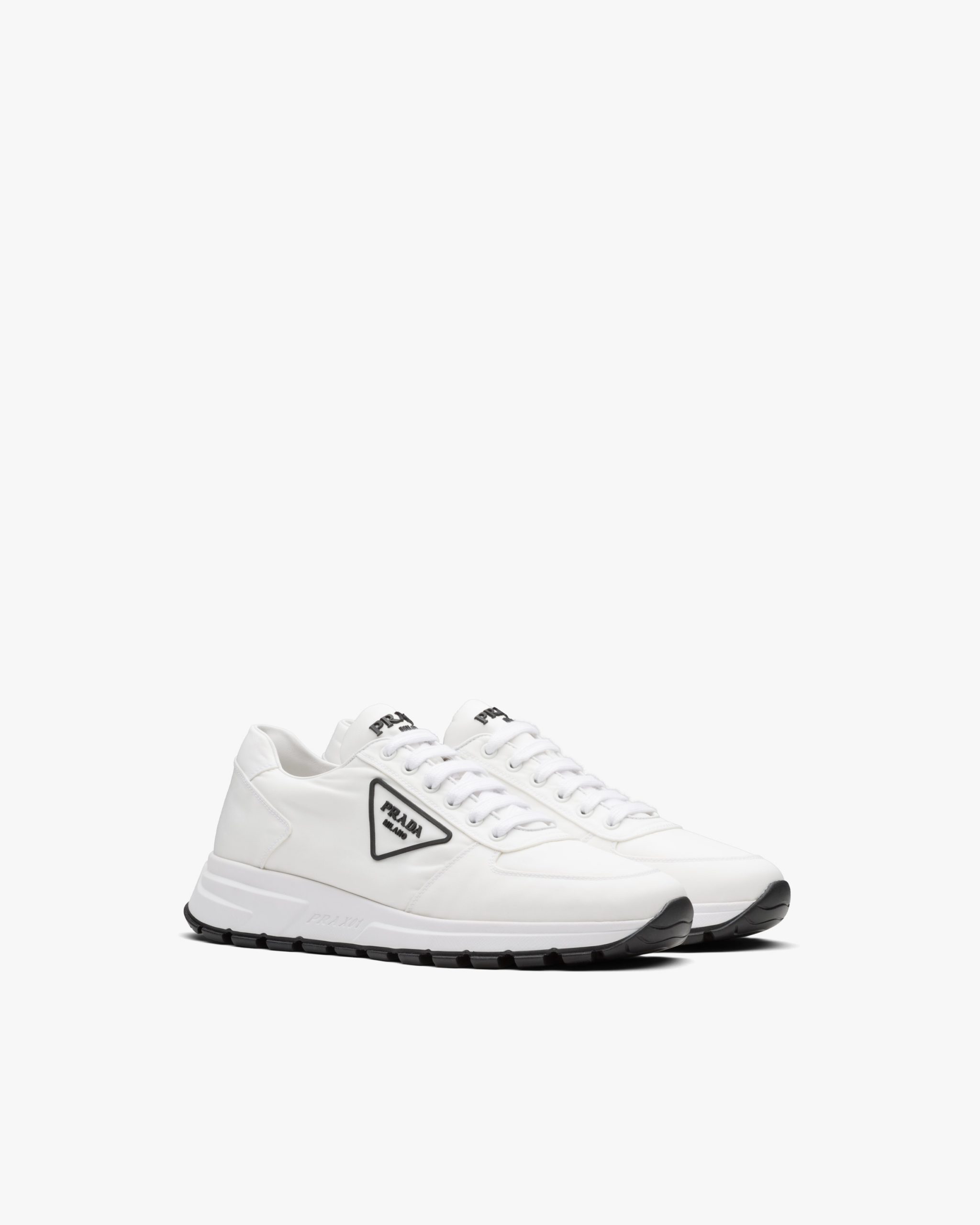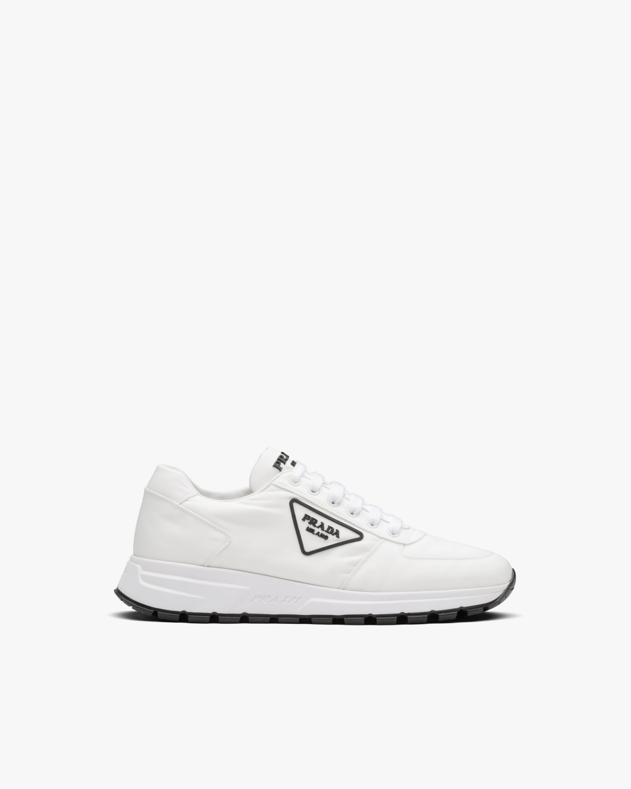 These Prada Prax sneakers made of Re-Nylon Gabardine fabric have a distinctive sporty design. The upper features decorative stitching and the iconic rubber triangle logo2 in relief. The sole has a distinctive geometric design.