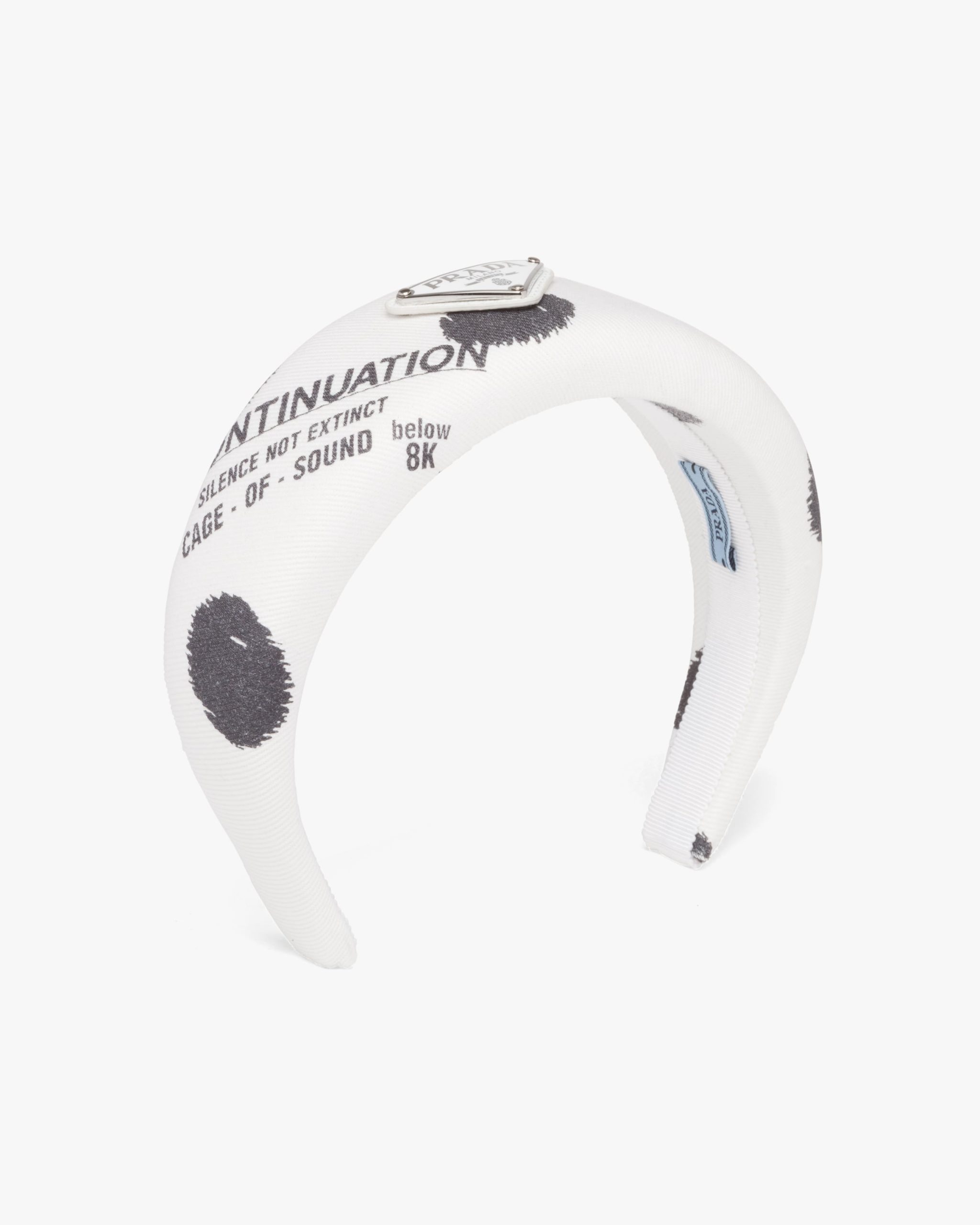 A sophisticated and emblematic accessory of Prada collectsions, the puffy headband with a beguiling rounded design presents always new reinterpretations. A maxi dot print decorates this accessory in Re-Nylon, a regenerated nylon yarn made of recycled, purified plastic materials collectsed in the ocean, fishing nets, and textile waste fibers. The prints are transformed into contrasting graphic tools that interrupt and break up uniform surfaces.