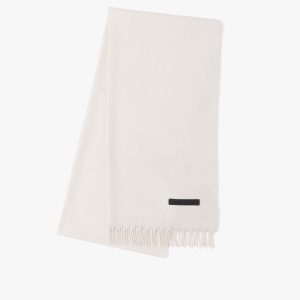 By combining traditional materials and technologically innovative recycled fibers, Prada presents a novel point of view on classic items and accessories like this tube scarf made of wool and regenerated nylon gabardine decorated with the metal triangle logo2.