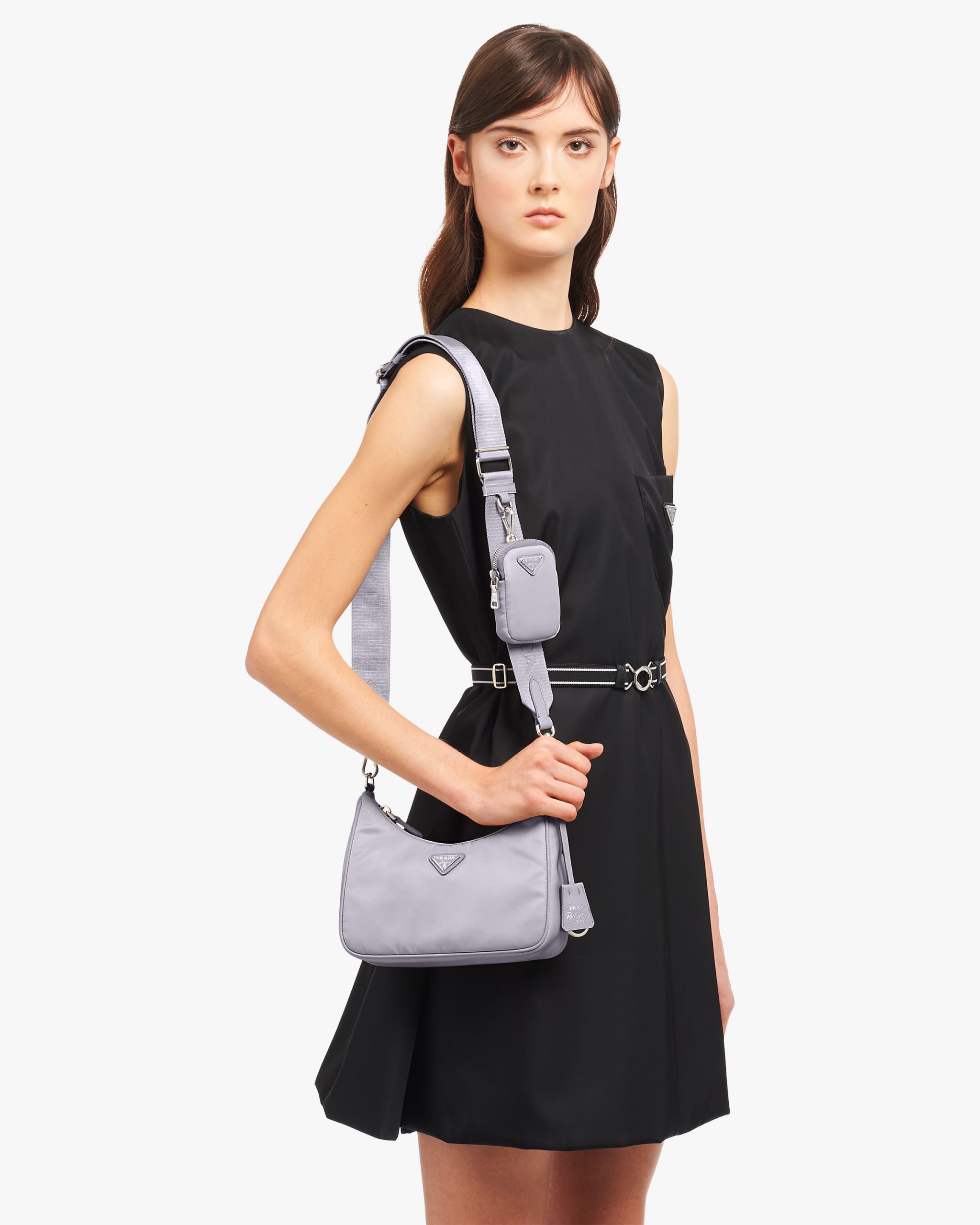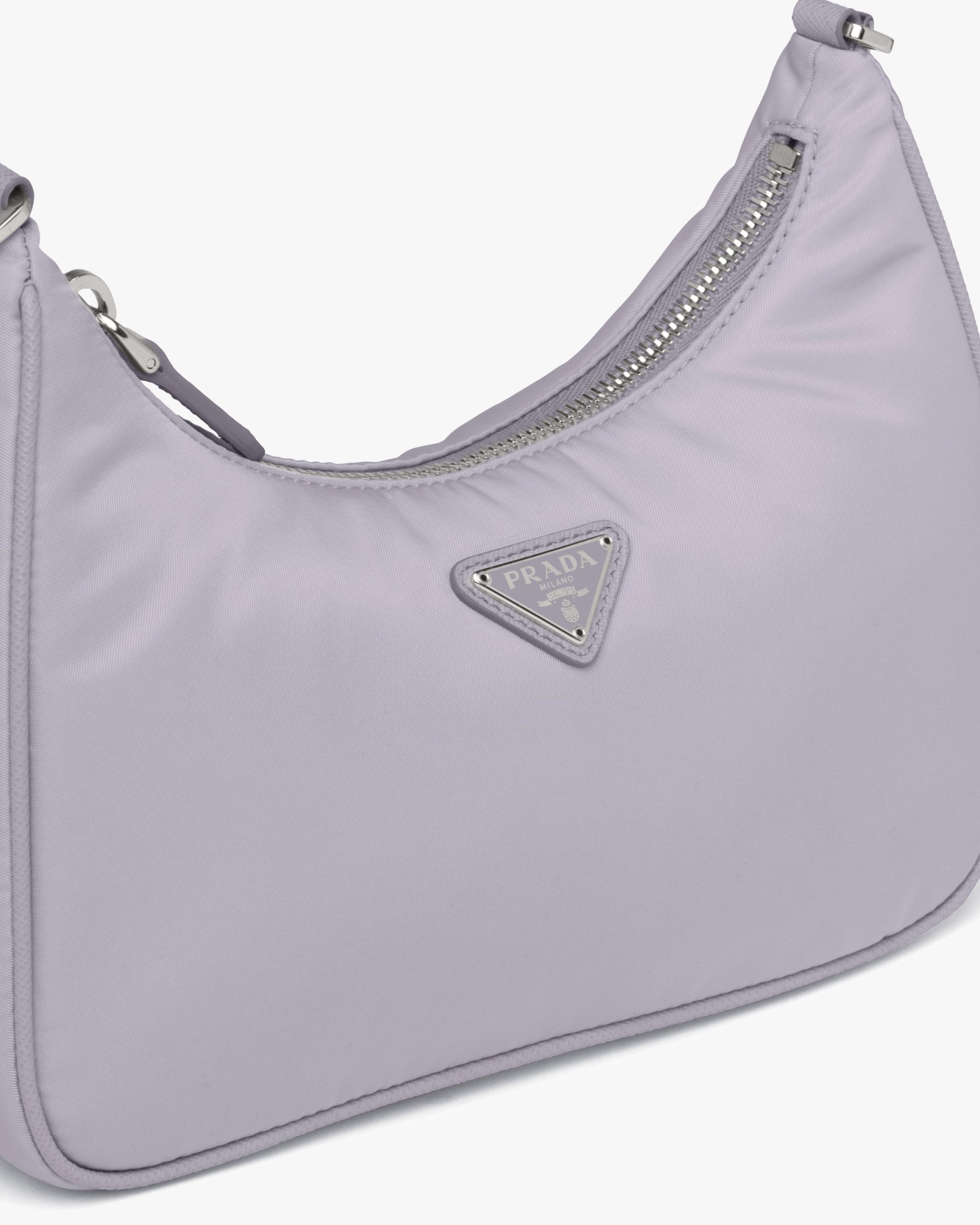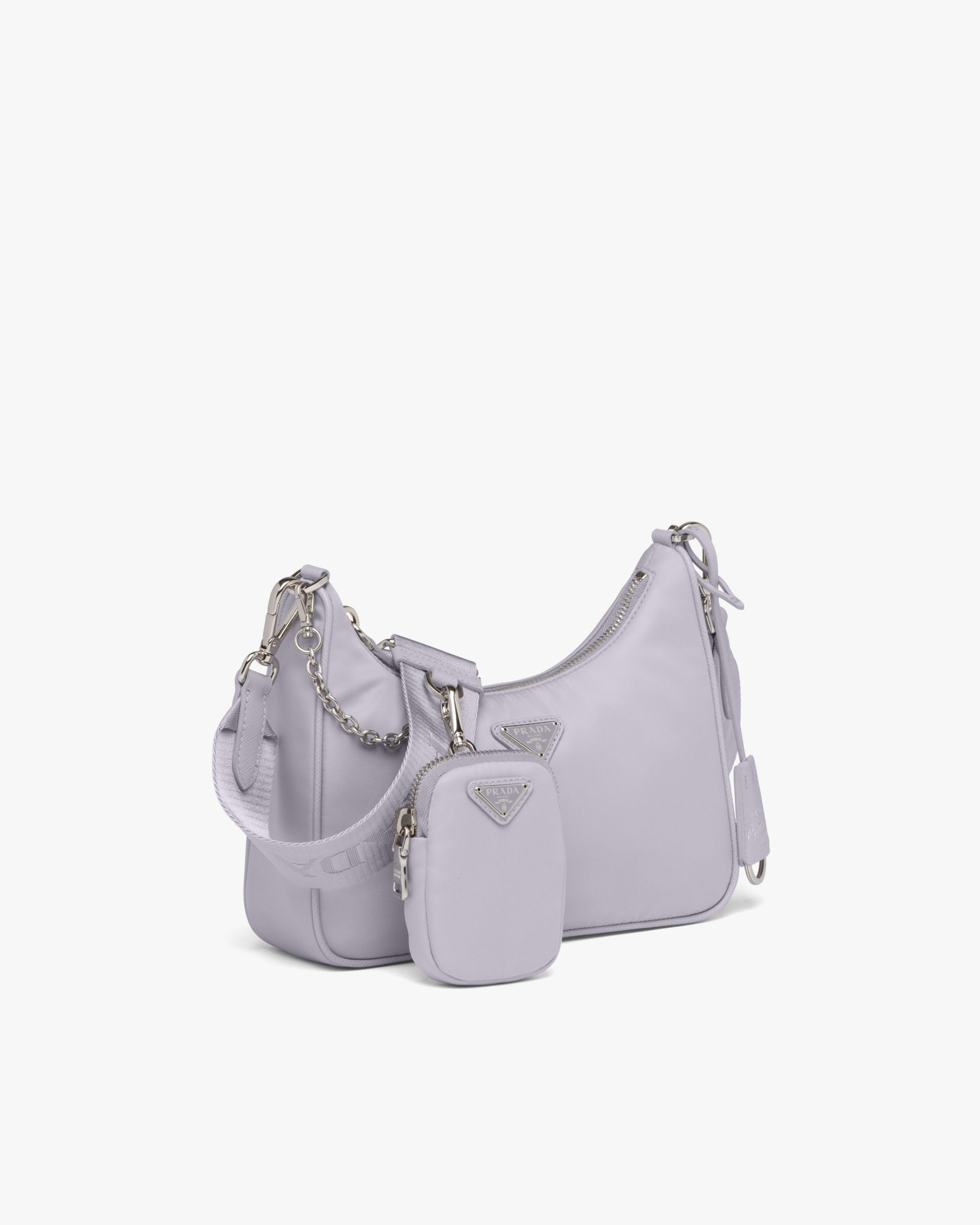 Inspired by the iconic mini hobo bag, the Prada Re-Edition 2005 shoulder bag is made of Re-Nylon: a regenerated nylon yarn (ECONYL?)produced from recycled, purified plastic trash collectsed in the ocean, fishing nets and textile waste fibers. This versatile bag with Saffiano leather trim comes with a detachable pouch attached to the shoulder strap.