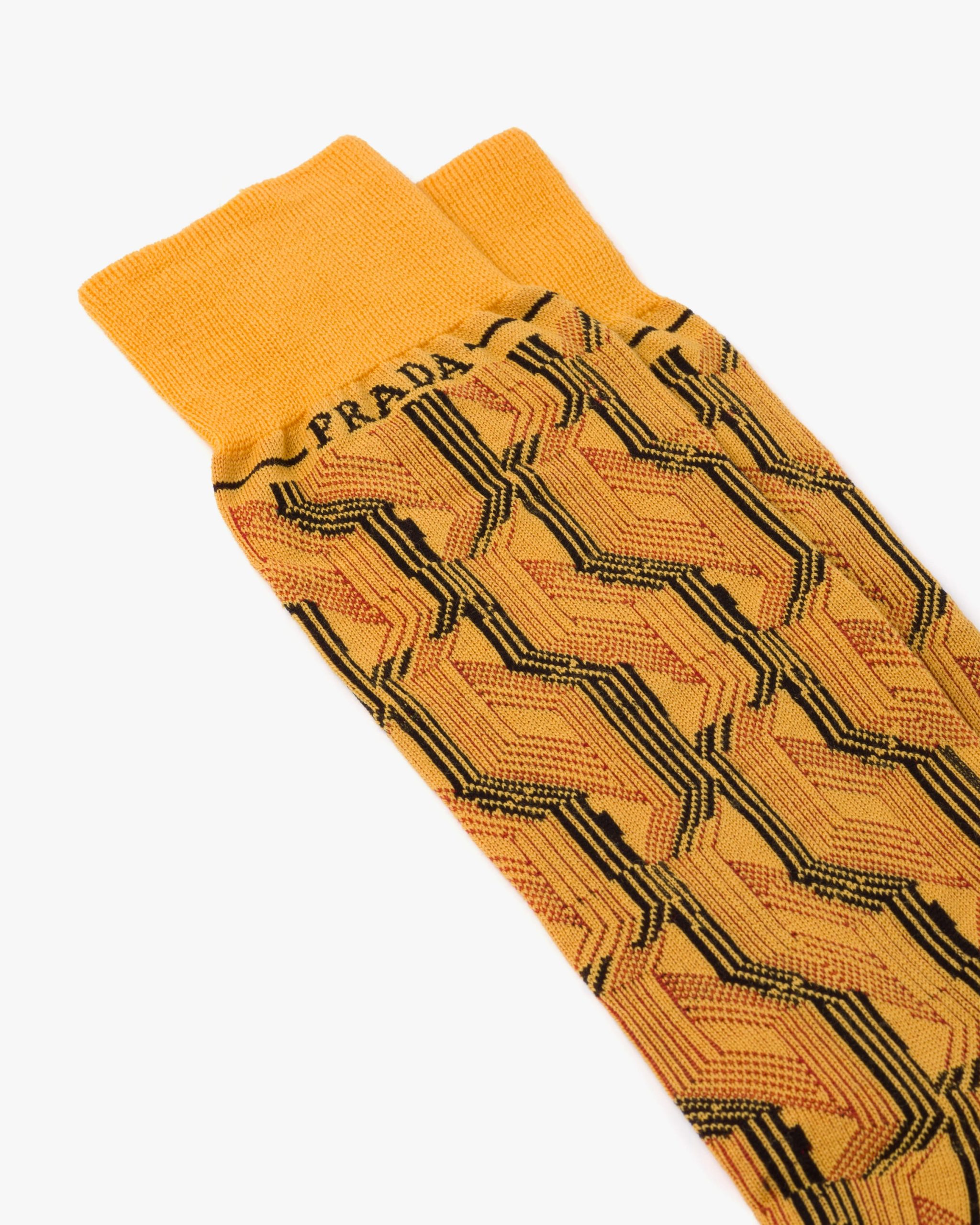 These ankle socks decorated with the lettering logo2 are made of superfine wool, an iconic Prada fabric characterized by the extreme lightness and fineness of its fibers.